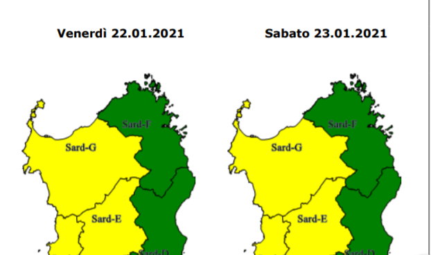 La Protezione civile regionale ha emesso a partire dalle ore 14:00 del 22.01.2021 e sino alle 13:59 del 23.01.2021 un AVVISO di allerta per: codice GIALLO (criticità ORDINARIA) per RISCHIO IDRAULICO E IDROGEOLOGICO sulle aree di allerta Montevecchio Pischinappiu, Tirso e Logudoro.