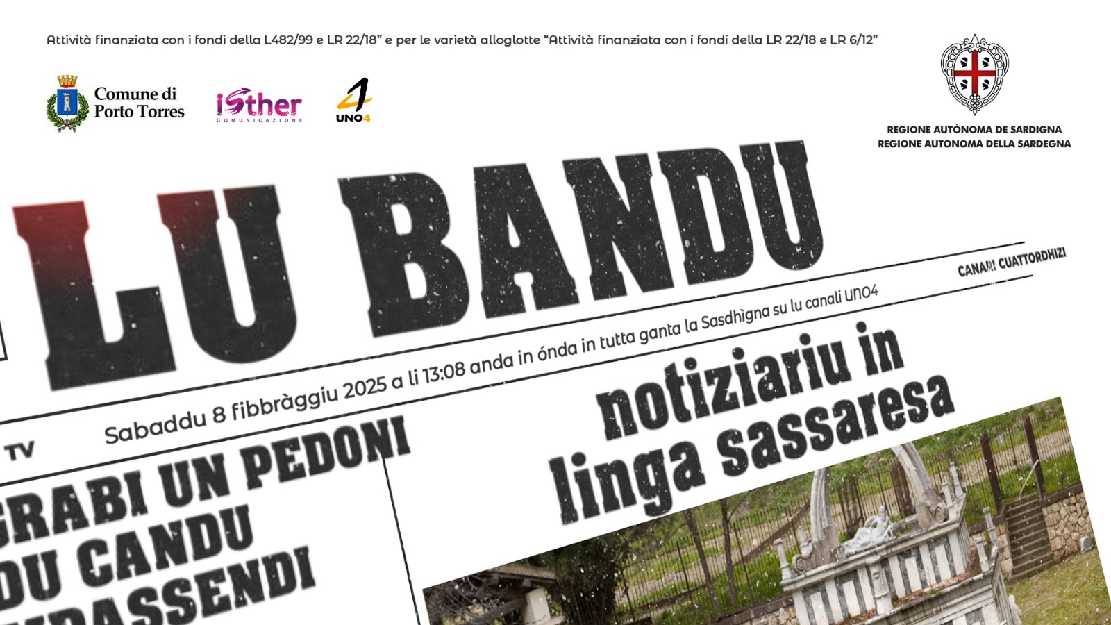 Sabaddu 8 fibbràggiu 2025 a li 13:08 anda in ónda in tutta ganta la Sardhìgna in lu canali UNO4, la prìmma puntadda di “Lu Bandu – Nutiziariu in linga Sassaresa-Turritana”. È un trabàgliu criaddu cu li dinà di la Regione Autonoma di la Sardhìgna assessoradu de s'Istrutzione publica, Benes culturales, Informatzione, Ispetaculu e Isport - Progetto “TuLiS” - Tutela linga sasdha