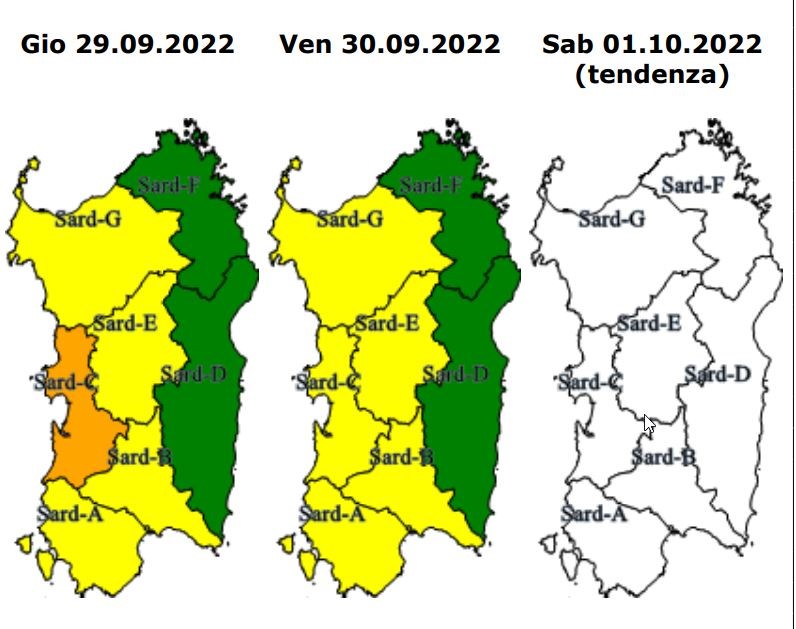 Sulla base dell'Avviso di Avverse condizioni meteorologiche prot. n. 33197 del 28/09/2022 riportante la dicitura "NELL’ARCO DELLA GIORNATA DI DOMANI (29/09/2022) SONO PREVISTE SULLA SARDEGNA OCCIDENTALE PRECIPITAZIONI SPARSE, A PREVALENTE CARATTERE DI ROVESCIO O TEMPORALE, CON CUMULATI LOCALMENTE ELEVATI. SARANNO POSSIBILI TEMPORALI FORTI ISOLATI, AI QUALI POTRANNO ESSERE ASSOCIATI FORTI RAFFICHE DI VENTO E FENOMENI GRANDINIGENI."