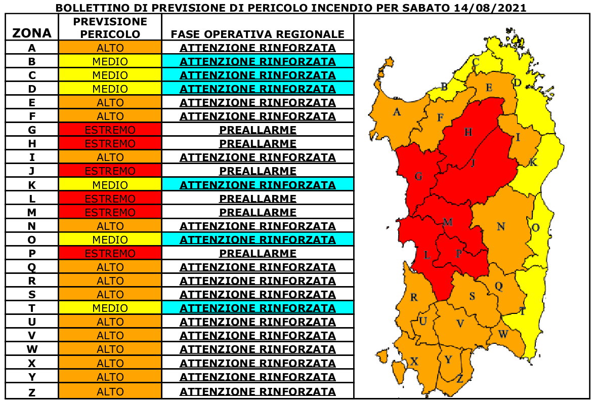 Il bollettino della Protezione civile regionale per il 14 agosto.