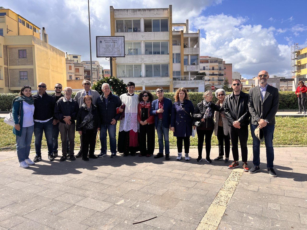 «Oggi siamo qui per ricordare i nove Eroi a cui questa piazza è intitolata. Il loro sacrificio, compiuto nel pieno della Seconda Guerra Mondiale, rappresenta un esempio di coraggio e dedizione. L’Onda, con i suoi nove marinai, pescava per rifornire di cibo la popolazione di Porto Torres e dei paesi vicini. Quel tragico mattino del 6 maggio 1943, mentre l’imbarcazione era impegnata nella pesca a strascico nei pressi di Punta Falcone, venne colpita dalle cannonate del sommergibile britannico Safari, che aprì il fuoco da una distanza di appena 550 metri. L’attacco non lasciò scampo: il peschereccio affondò rapidamente. Si salvarono solo due fuochisti: Antonio Gavino Sanna e Giovanni Sposito. Altri sette uomini morirono in mare, tra cui Ciro Valente, deceduto dissanguato. Una tragedia che colpì profondamente l’intera comunità turritana, privata di uomini che ogni giorno affrontavano il mare per sfamare chi era rimasto a terra. Nel luglio 1947 il relitto dell’Onda fu riportato a galla: ad accoglierlo una folla commossa. Da allora, il ricordo di quei pescatori è diventato memoria collettiva. Come ogni anno, oggi ci ritroviamo per dire che il loro sacrificio – e quello delle loro famiglie – non sarà mai dimenticato.»