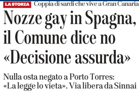 Certificato "negato" per nozze gay in Spagna, sindaco Mulas: azione comune per cambiare la legge
