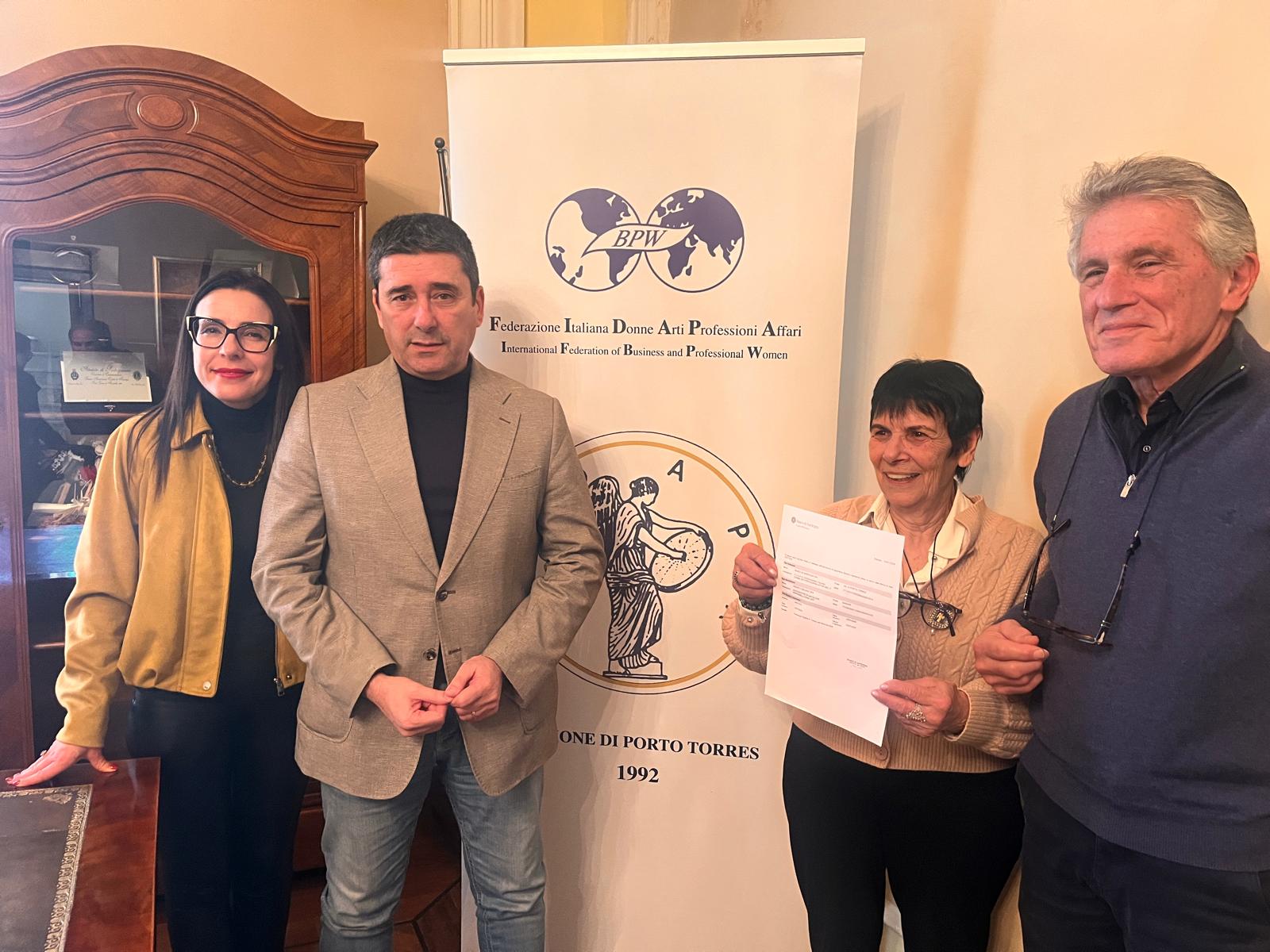 Questa mattina nella Sala di rappresentanza del Palazzo del Marchese, alla presenza del Sindaco Massimo Mulas e dell'assessora alla Cultura Maria Bastiana Cocco, la FIDAPA BPW Italy (Federazione Italiana Donne, Arti, Professioni ed Affari) - Sezione di Porto Torres ha consegnato ufficialmente all’Associazione di Oncologia “Mariangela Pinna” il ricavato della 18^ edizione della “Navicula Turritana- lo Sport per la Ricerca”.