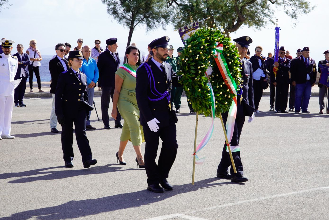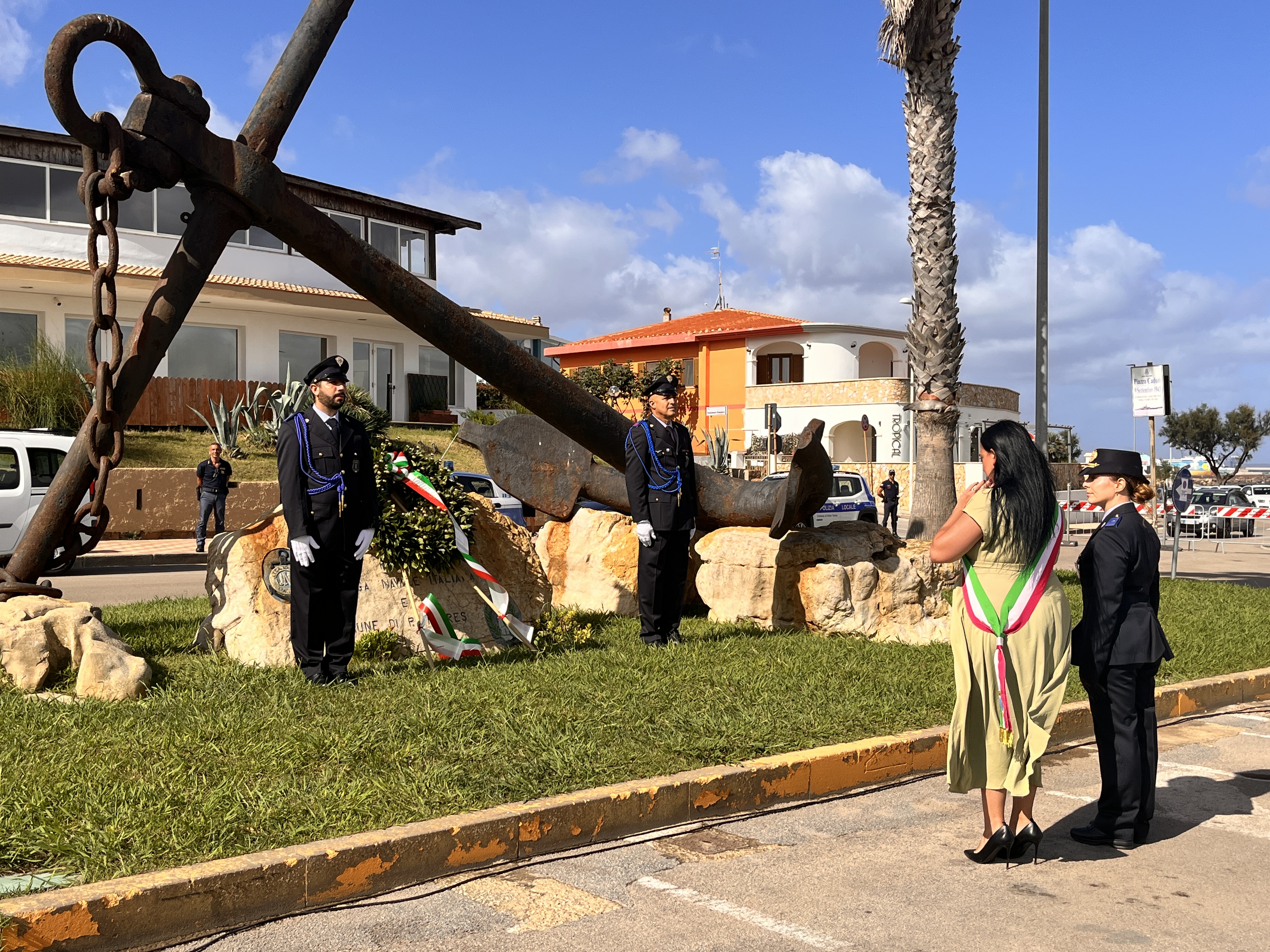 Dopo l'alzabandiera sulle note dell’Inno Nazionale la vicesindaco Simona Fois, accompagnata dagli agenti della Polizia Locale, ha deposto una corona d' alloro ai piedi del Monumento dei caduti.