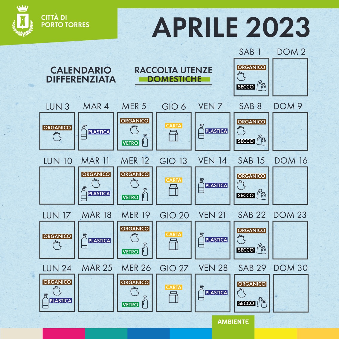 Differenziata, il calendario di aprile (compresi Pasqua e Festa della Liberazione)