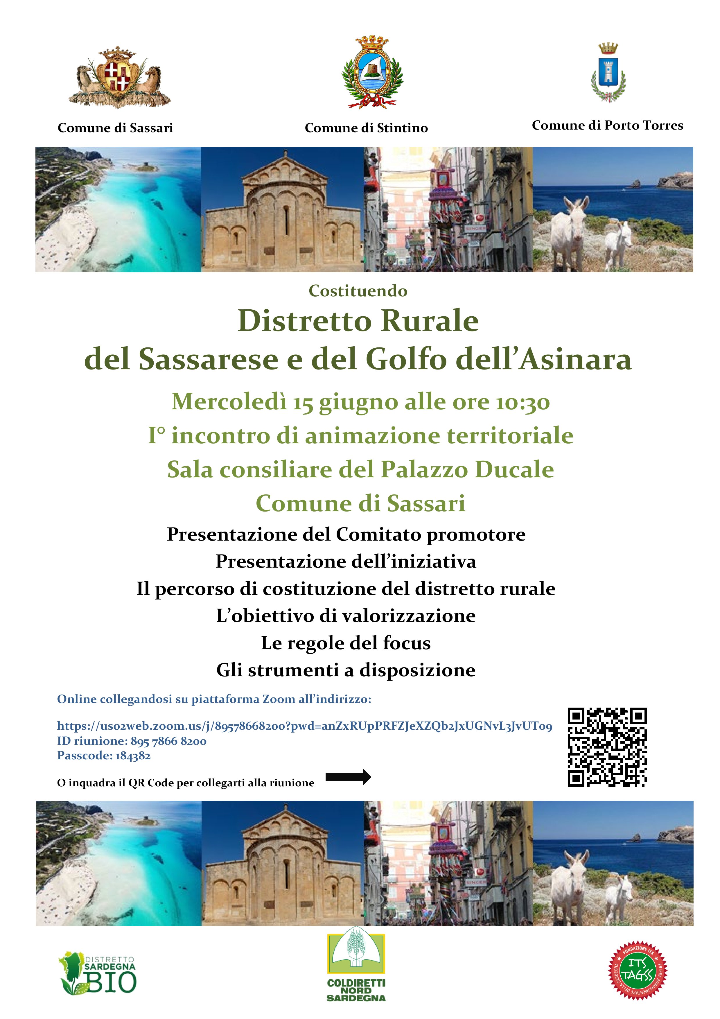 I Comuni di Sassari, Porto Torres e Stintino, con il fondamentale impulso e la collaborazione della Coldiretti Nord Sardegna ed altri organismi presenti nel territorio, intendono avviare un percorso congiunto di animazione e di partecipazione che porti alla costituzione di un distretto rurale e alla redazione del relativo Piano di distretto rurale.