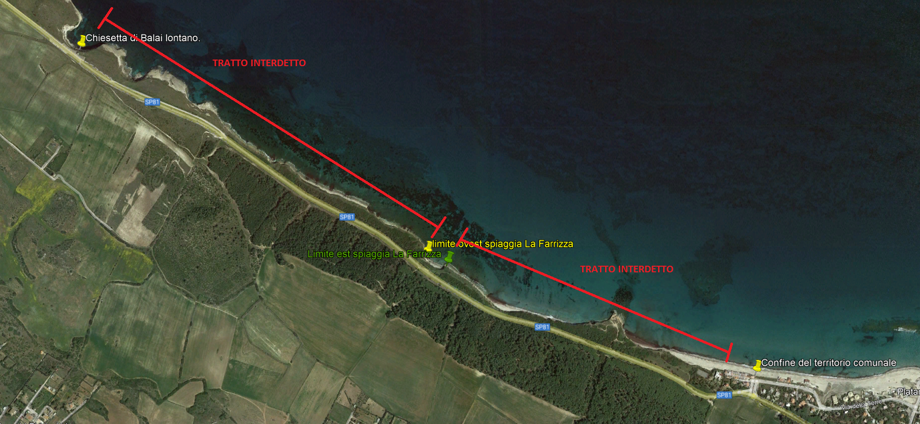 Nella nuova ordinanza si specifica così che è vietata la balneazione l'accesso e lo stazionamento, per persone e mezzi, lungo la fascia costiera tra la chiesetta di Balai Lontano e la spiaggia di Abbacurrente, a esclusione della spiaggia della Farritza che è rimasta fuori dai divieti. Il provvedimento sarà in vigore "fino a quando non saranno ripristinate le condizioni di sicurezza". Nel documento viene ricordato che in caso di inadempienza verrà applicata una sanzione amministrativa pecuniaria da 25,00 a 500,00 euro. Nell'area sono stati ricollocati i cartelli che riportano i contenuti dell'ordinanza e ripristinate le recinzioni danneggiate.