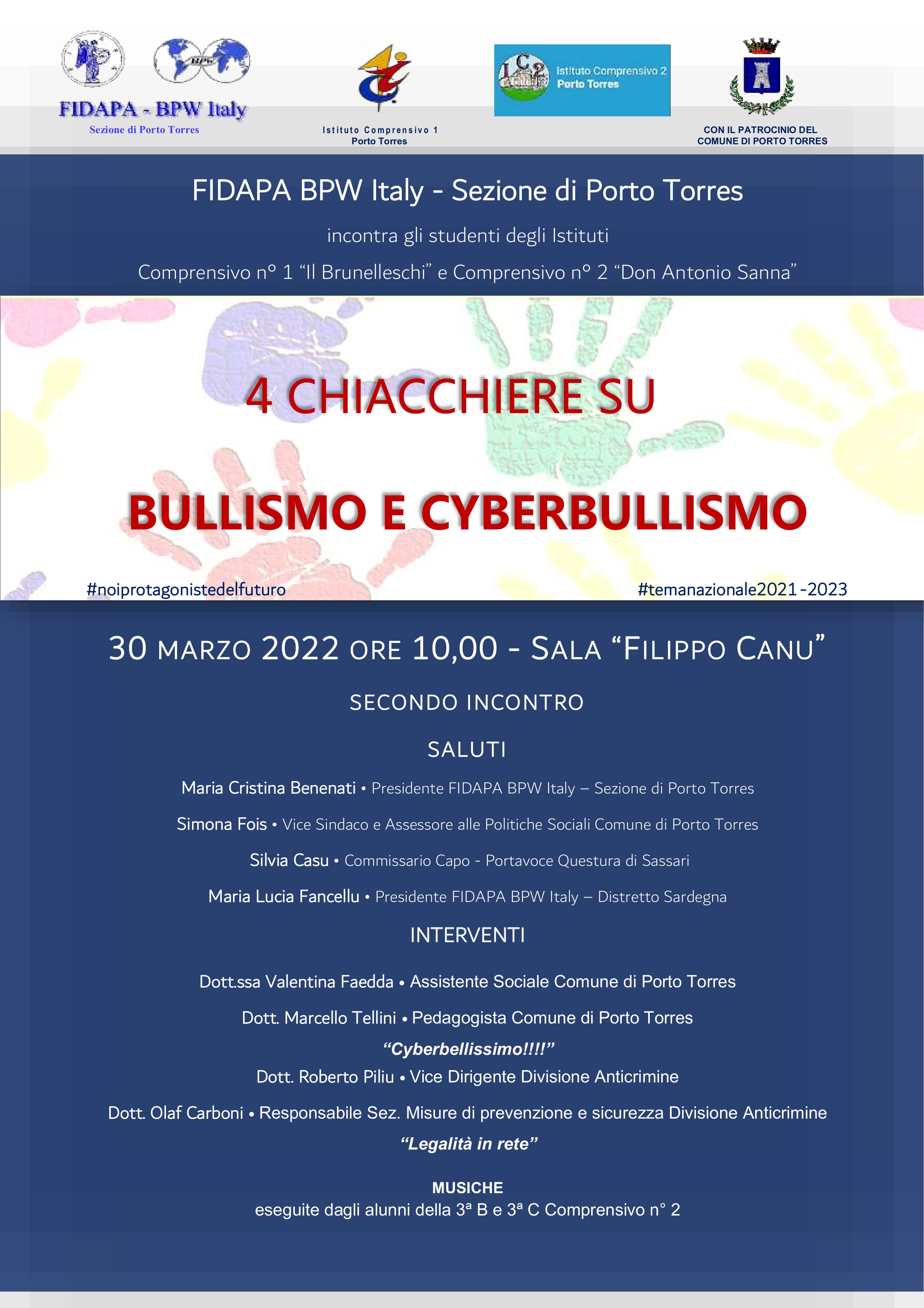 FIDAPA BPW Italy - Sezione di Porto Torres incontra gli studenti degli Istituti Comprensivo n° 1 “Il Brunelleschi” e Comprensivo n° 2 “Don Antonio Sanna”: