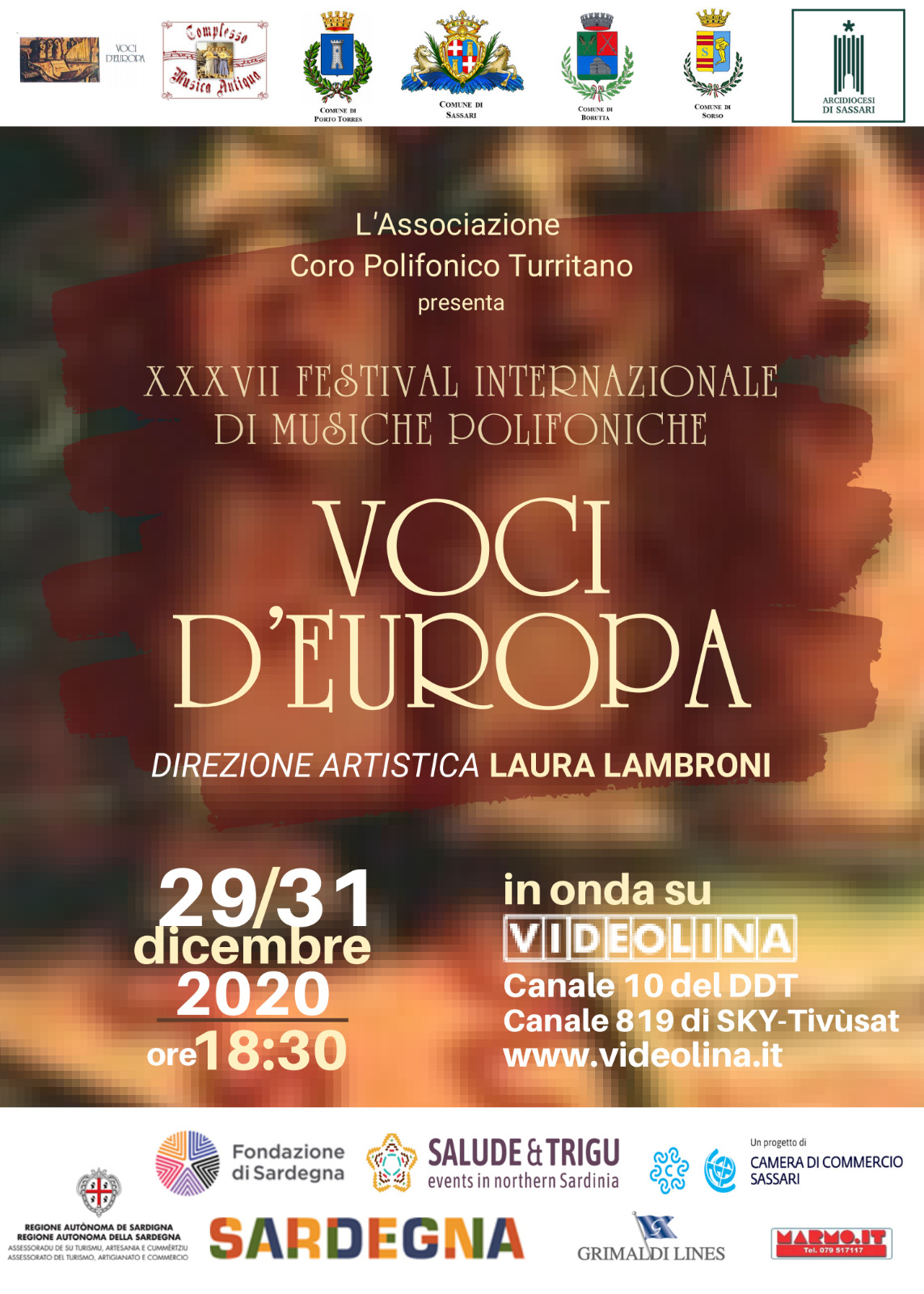 Risuoneranno all’interno di tre preziose perle di origine romanica (la basilica di San Gavino a Porto Torres, la chiesa di San Pietro di Sorres a Borutta, la chiesa di San Pietro di Silky a Sassari) e nelle sale del Palazzo Baronale di Sorso le note della XXXVII edizione del Festival internazionale di musiche polifoniche “Voci d’Europa”. La manifestazione organizzata dal Coro Polifonico Turritano non si ferma: le misure restrittive imposte dalle normative antiCovid impediscono l’accesso del pubblico, ma due appuntamenti speciali saranno trasmessi il 29 e il 31 dicembre, alle ore 18:30, su Videolina (ch. 10 del digitale terrestre e 819 di Sky e TivùSat), sulla app Unione Digital e in live streaming sul sito web www.videolina.it. Le repliche andranno in onda il 5 e 6 gennaio alle ore 22:30 e il 13 e 15 gennaio alle ore 21:30. Gli speciali saranno visibili in differita anche sui canali Facebook del Festival e del Coro Polifonico Turritano.