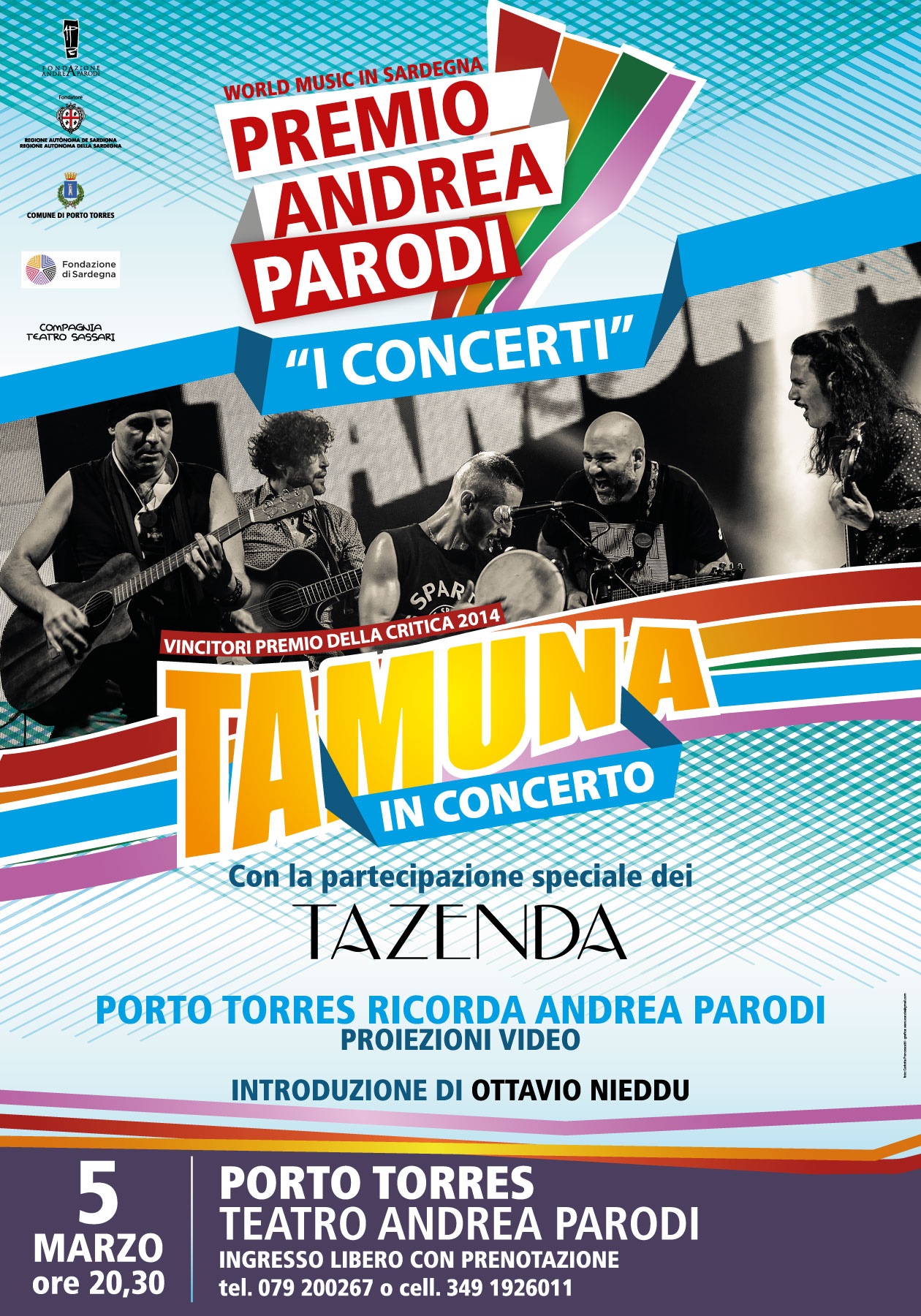 I siciliani Tamuna sono stati i vincitori del premio della critica nell’edizione del 2014 e per questo la Fondazione ha realizzato per il gruppo il videoclip del loro brano “Balai”, come omaggio ad Andrea Parodi, a Porto Torres e a tutta la Sardegna. Il video, che ha già superato sulla loro pagina facebook le 40.000 visualizzazioni, verrà proiettato in questa occasione.