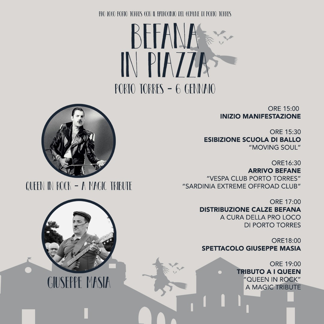 Tutto pronto a Porto Torres per la grande festa della Befana che accoglierà grandi e piccini in Piazza Umberto I a partire dalle 15 del 6 gennaio.