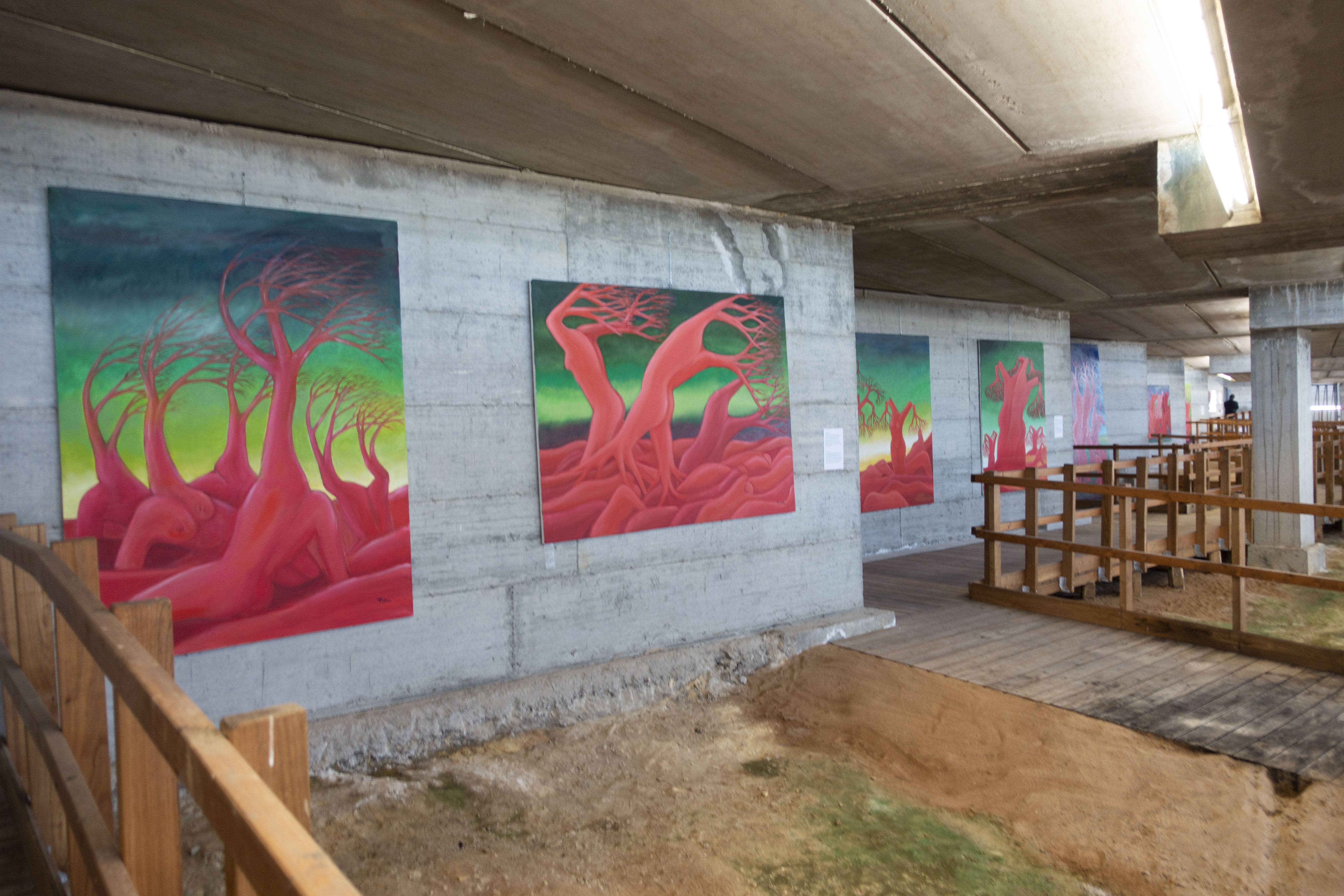 Come location è stato scelto un luogo simbolo: sotto la gradonata che collega la banchina del molo sud con la stazione marittima, le indagini condotte dalla Soprintendenza per i Beni Archeologici vent’anni fa avevano permesso di mettere in luce diverse strutture di età romana. Si tratta di costruzioni portuali, di edifici con pavimento a mosaico, dei resti della rete viaria che collegava il porto con il cuore della Colonia Romana di Turris Libisonis. Questa antica porta della Sardegna rappresenta quindi lo spazio ideale per affrontare il tema delle migrazioni, dell’accoglienza e dell’incontro tra culture e identità diverse.