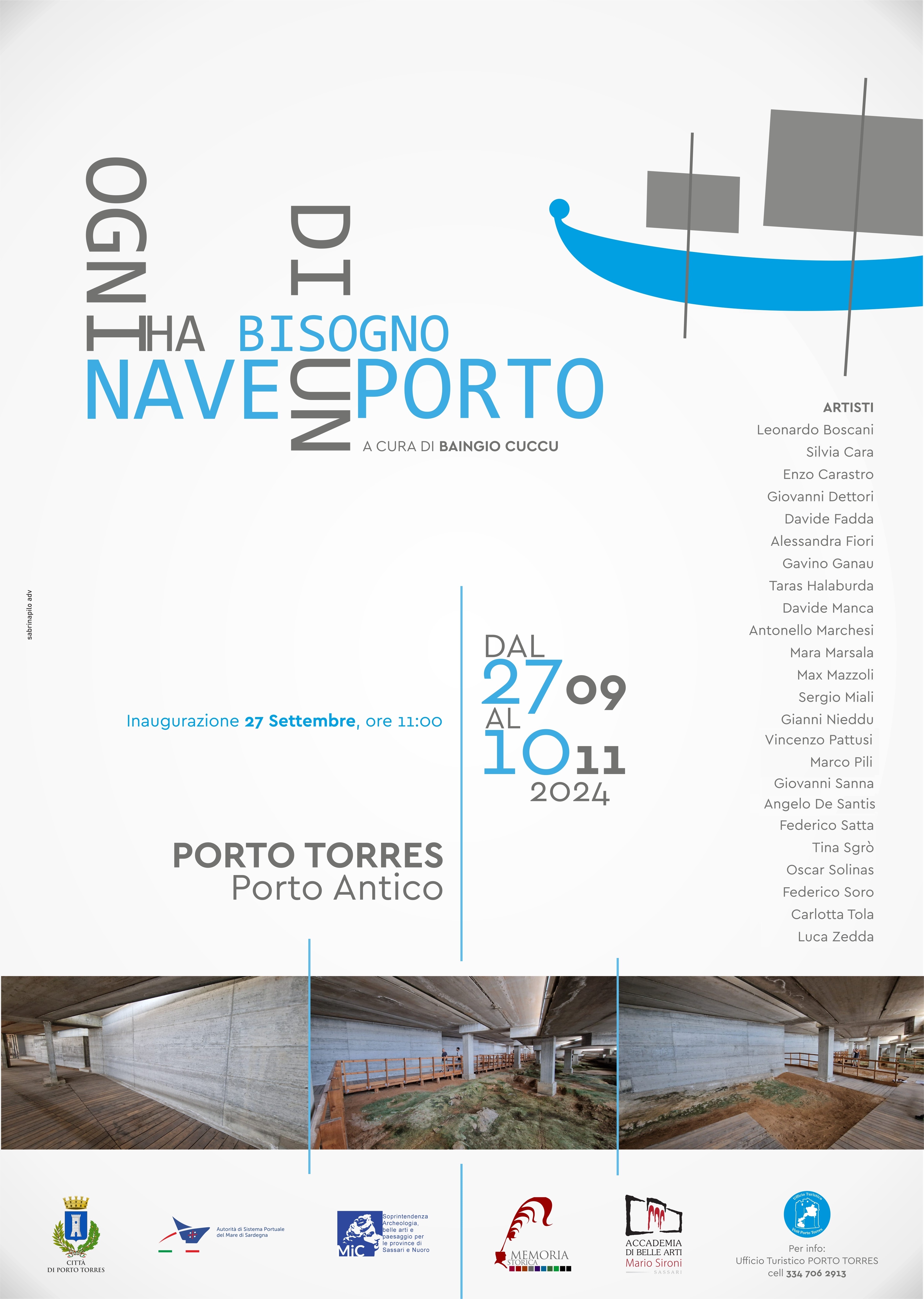 Venerdì 27 settembre alle ore 11:00 nel sito archeologico Turris Libisonis Portus Sardiniae, il Porto Antico della città, sarà inaugurata la mostra “Ogni Nave ha bisogno di un porto”.