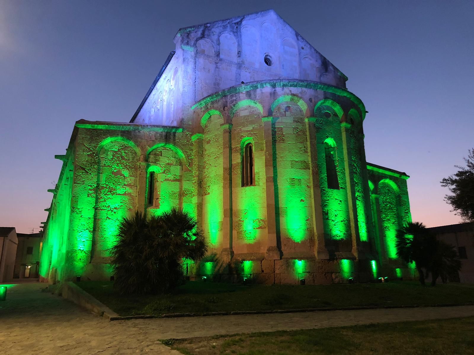 La chiesa di San Gavino illuminata per la Giornata delle Malattie Rare