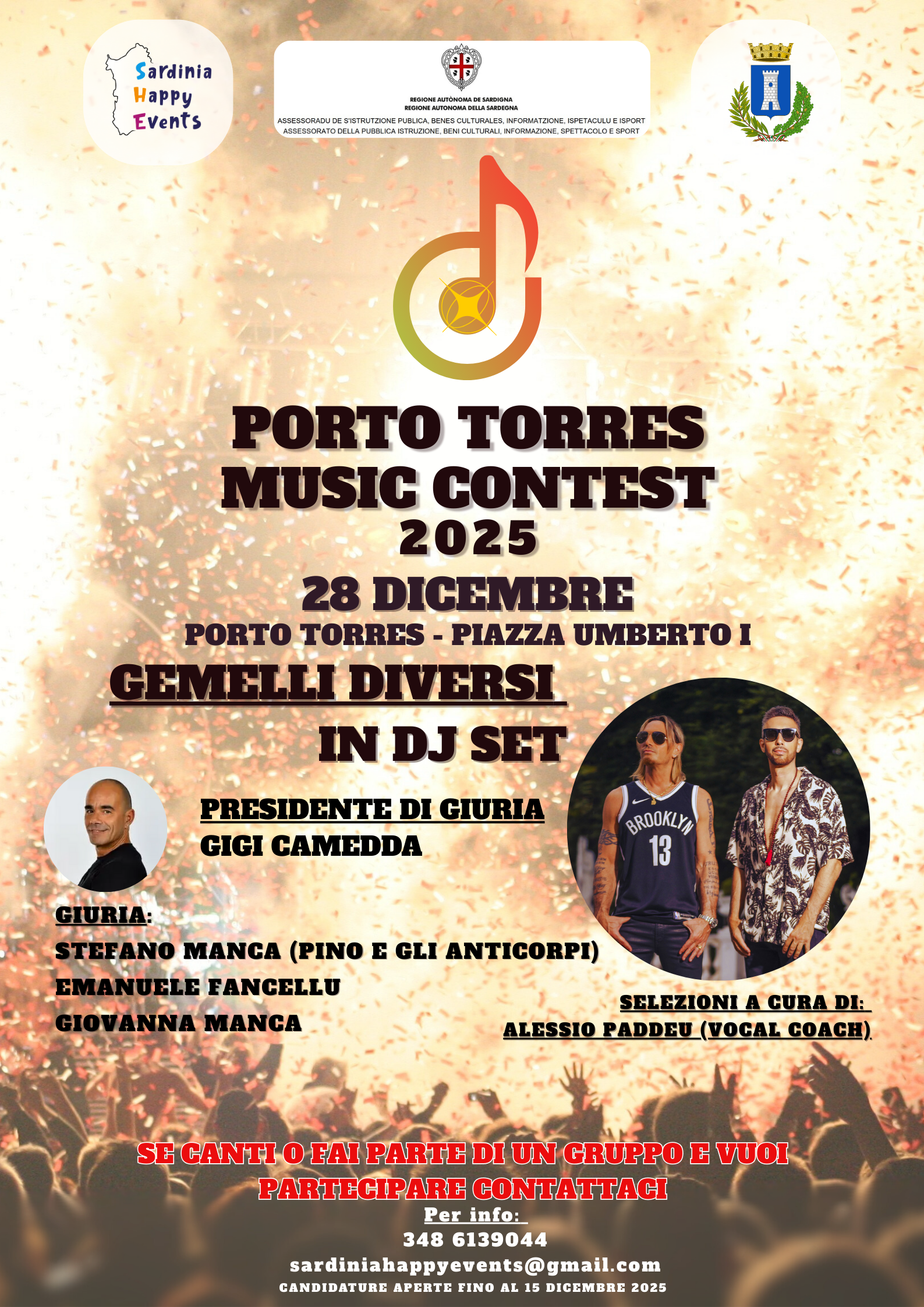 «Sono davvero felice di essermi impegnato come promotore di questo progetto quest'anno giunto alla sua seconda edizione più bella che mai – ha aggiunto Gavino Sanna - un’iniziativa che va oltre il semplice intrattenimento ma si configura come un evento culturale di alto profilo per la Sardegna. Il supporto della Regione e il patrocinio del Comune attestano la serietà e il valore della nostra missione. Crediamo fermamente che il Contest sia una piattaforma fondamentale per mettere in luce nuovi talenti, offrendo loro un riconoscimento tangibile attraverso un montepremi significativo e la visibilità garantita da una giuria di altissimo livello. Siamo certi che l'evento che culminerà con l'esibizione dei Gemelli Diversi, sia destinato a generare un impatto positivo e duraturo sul tessuto culturale e sociale del nostro territorio».