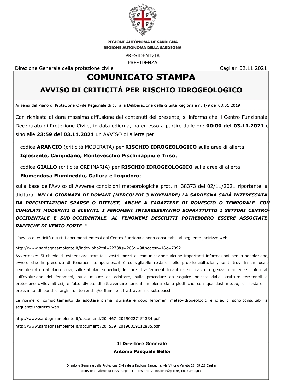 Avviso della Protezione civile regionale