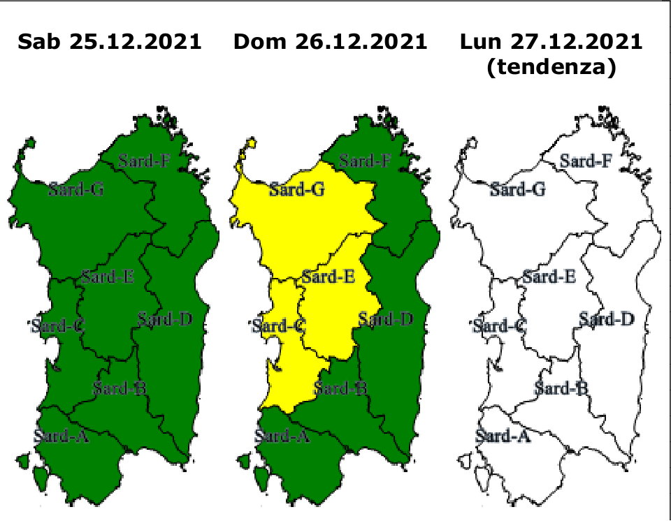 La Protezione civile regionale ha emesso per la giornata del 26 dicembre (area Logudoro) un'allerta gialla di criticità ordinaria per rischio idrogeologico e idraulico.
