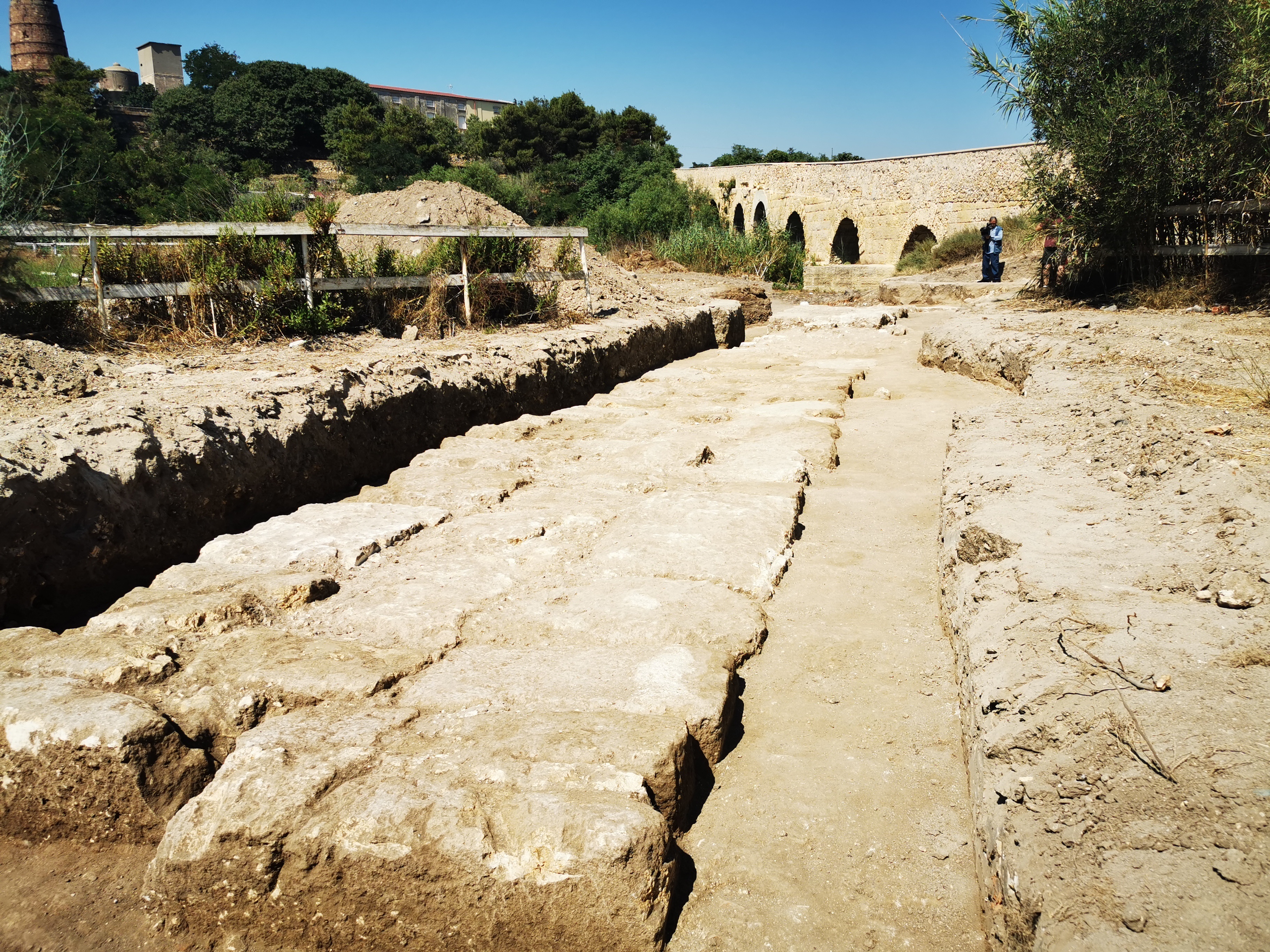 I lavori, avviati nel mese di maggio, hanno previsto l’apertura di un saggio all’imboccatura del ponte, quasi in aderenza con l’intervento di scavo condotto da Antonietta Boninu nel 2010, dove era stato messo in luce un sensibile abbassamento della quota del piano stradale del ponte in prossimità della sponda orientale. Le nuove ricerche hanno confermato che il piano stradale antico procede sulla terraferma direttamente sul piano roccioso, con una sistemazione che dove conservata presenta ciottoli legati con malta, continuando ad abbassarsi per poi risalire sensibilmente dopo circa 20 m. Questa sistemazione era dovuta con grande probabilità alla necessità di garantire una valvola di sfogo per le piene del fiume e al tempo stesso un argine a protezione della Colonia Romana; il rinvenimento nello scavo in oggetto di frammenti di ceramica databili al I secolo d.C., contemporanei alla data di costruzione del ponte, sembra indicare che tale sistemazione possa essere stata pensata subito dopo la fondazione della città.