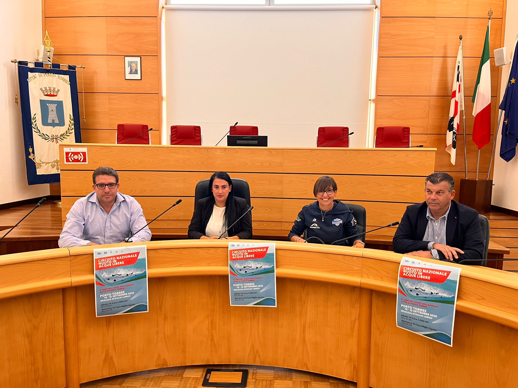 Questa mattina la Sala consiliare del Comune di Porto Torres ha ospitato la conferenza stampa di presentazione del “V° Meeting Golfo dell'Asinara” che porterà nello splendido scenario del Golfo dell’Asinara 2 tappe del circuito nazionale in acque libere della Federazione Italiana Nuoto. La competizione, organizzata dall’Aquatic Team Freedom di Porto Torres, in collaborazione con il comitato FIN Sardegna e con il patrocinio del Comune, prenderà il via sabato 14 settembre alle 10:00 nella spiaggia dello Scoglio Lungo con la gara di 3000 metri. Il giorno seguente, alla stessa ora, sarà la volta della gara Miglio Sprint di 1800 metri.