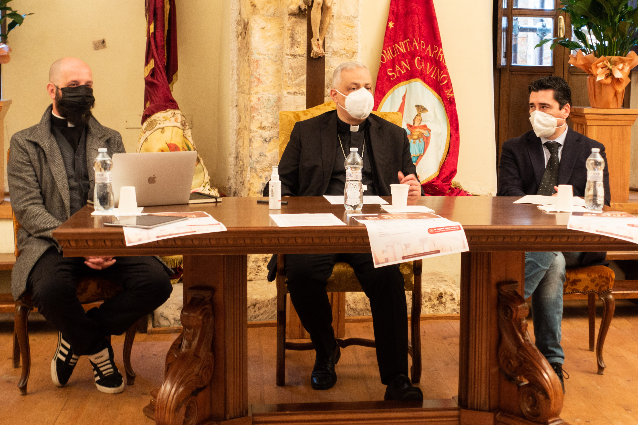 Questa matina, nella Sala Capitolare della Basilica di San Gavino, l'arcivescovo Gian Franco Saba, il responsabile dell'Ufficio comunicazioni sociali della Diocesi, don Michele Murgia, e il sindaco Massimo Mulas hanno presentato il programma religioso della Festha Manna 2021.