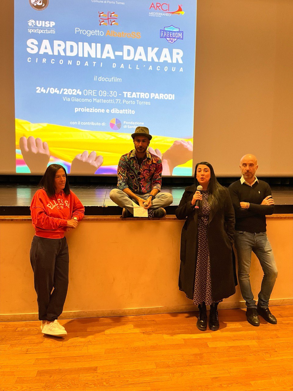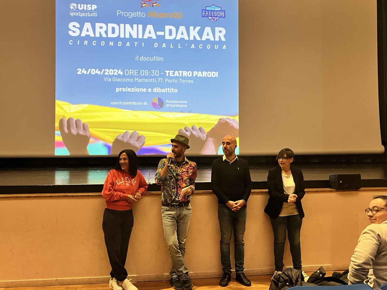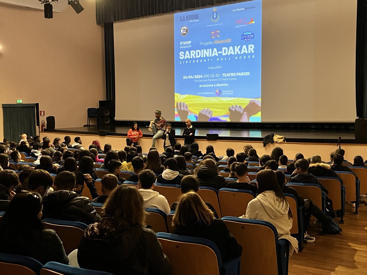 Imparare a percepire il mare e l’acqua non come pericolo ma come elemento che unisce, come spazio in cui sentirsi liberi e tutti uguali e come ponte tra mondi e culture differenti. È il cuore del progetto sportivo-umanitario Sardinia-Dakar realizzato in Senegal lo scorso novembre dall’Associazione Sportiva Progetto ALbatroSS con il sostegno della Uisp di Sassari, dell’Aquatic Team di Porto Torres e della Fondazione di Sardegna e documentato nel docufim “Sardinia-Dakar, circondati dall’acqua” che questa mattina è stato proiettato al Teatro Comunale Andrea Parodi di Porto Torres. Manolo Cattari, Loredana Barra e Giuseppe Salis Farina, protagonisti del docufilm insieme a Baro Ka Der e Mattia Uldanck, hanno spiegato alle studentesse e agli studenti degli istituti scolastici cittadini che hanno partecipato alla proiezione, gli obiettivi del progetto che mira a costruire un legame culturale e circolare tra la città di Porto Torres e il Senegal per il potenziamento reciproco della capacità di educazione e di inclusione grazie allo sport. In particolare, nel docufilm, si sottolinea il collegamento, attraverso il concetto di privazione della libertà poi riconquistata, tra le isole dell’Asinara e di Gorée da dove partivano le navi schiaviste dirette nelle Americhe.