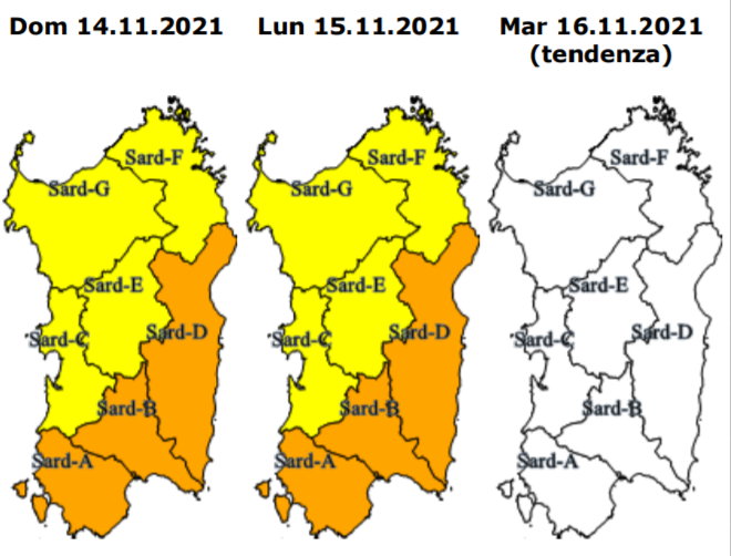 - codice ARANCIO (criticità MODERATA) per RISCHIO IDROGEOLOGICO sull'area di allerta Flumendosa Flumineddu.