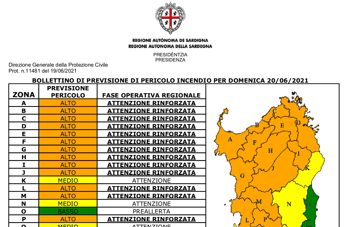 Protezione civile regionale, pericolo incendi il 20 giugno