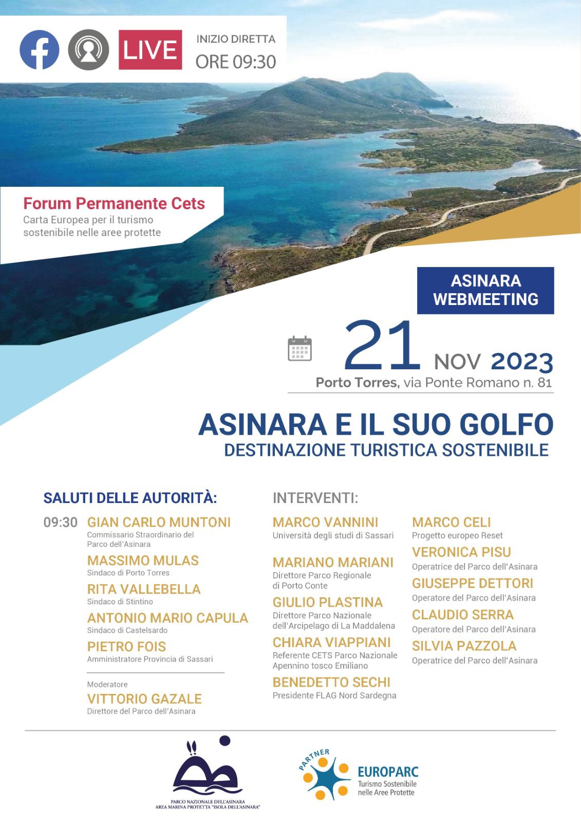 Martedì 21 novembre nella sede dell’Ente Parco dell’Asinara a Porto Torres, in Via Ponte Romano 81, si terrà il webinar “Asinara e il suo golfo. Destinazione turistica sostenibile”, nell’ambito del “Forum della Carta Europea per lo Sviluppo sostenibile CETS I e II”.
