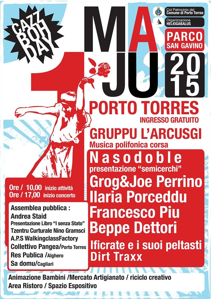 L'associazione Heliogabalus organizza, col patrocinio del Comune di Porto Torres, per i festeggiamenti del 1° maggio 2015, al Parco “San Gavino” di Porto Torres, ai piedi della Basilica, una giornata di incontro per bambini, confronto sociale e territoriale, arte, artigianato e musica.