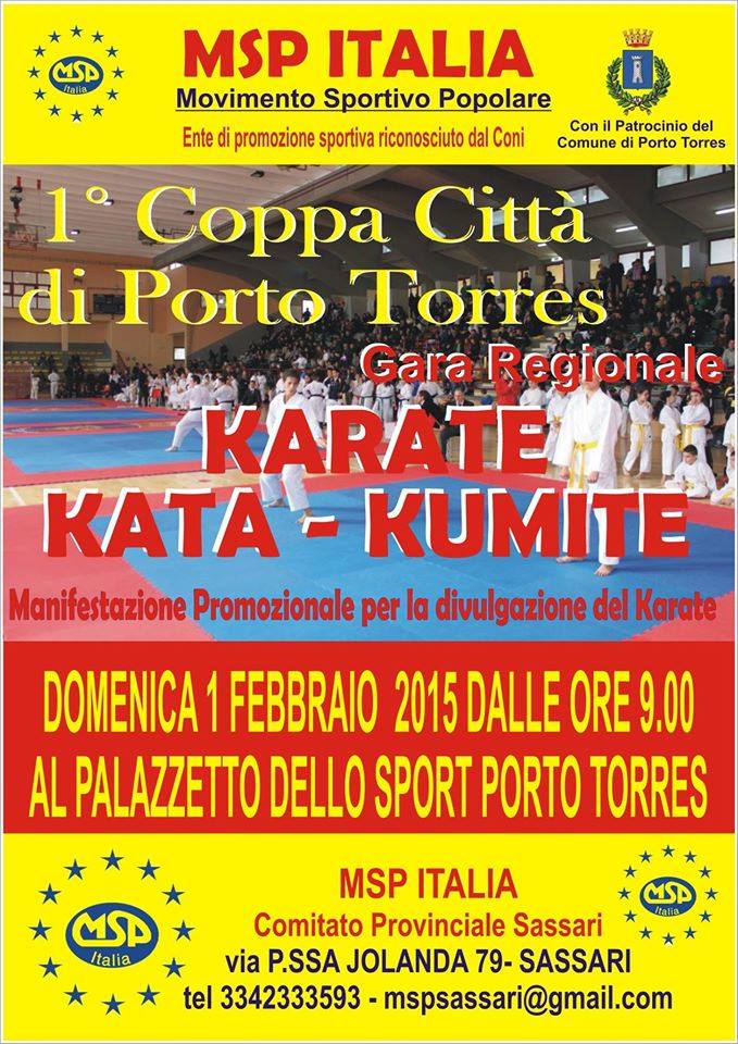 Il Movimento Sportivo Popolare Italia (Ente di promozione sportiva riconosciuto dal Coni) - Regione Sardegna - Comitato Provinciale Sassari-Olbia, organizza, col patrocinio del Comune di Porto Torres, la 1ª coppa Città di Porto Torres, gara regionale di Karate Kata-Kumite, manifestazione promozionale per la divulgazione del Karate.