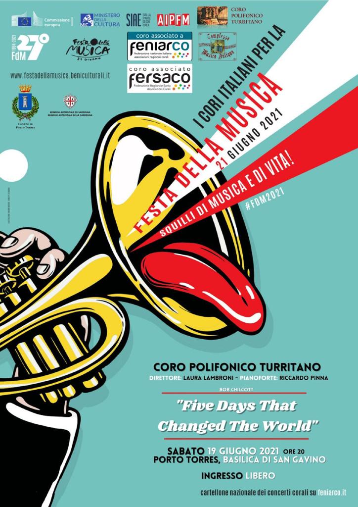 Cantare per rinascere. Il 19 giugno, alle 20:30, presso la Basilica di San Gavino a Porto Torres, il Coro Polifonico Turritano terrà un breve concerto dal titolo Five days that changed the world (Cinque giornate che hanno cambiato il mondo), dall’omonimo corpus di brani del compositore contemporaneo Bob Chilcott per Coro misto, Voci bianche e Pianoforte. Un gesto simbolico che, in occasione della Festa della musica celebrata trasversalmente in tutta Italia da centinaia di associazioni corali, porta un segnale di speranza per un futuro migliore e di fiducia nell’unione delle genti e nella fratellanza, soprattutto in questi tempi difficili. Al concerto prenderà parte il M° Riccardo Pinna al pianoforte e sarà diretto dal M° Laura Lambroni.