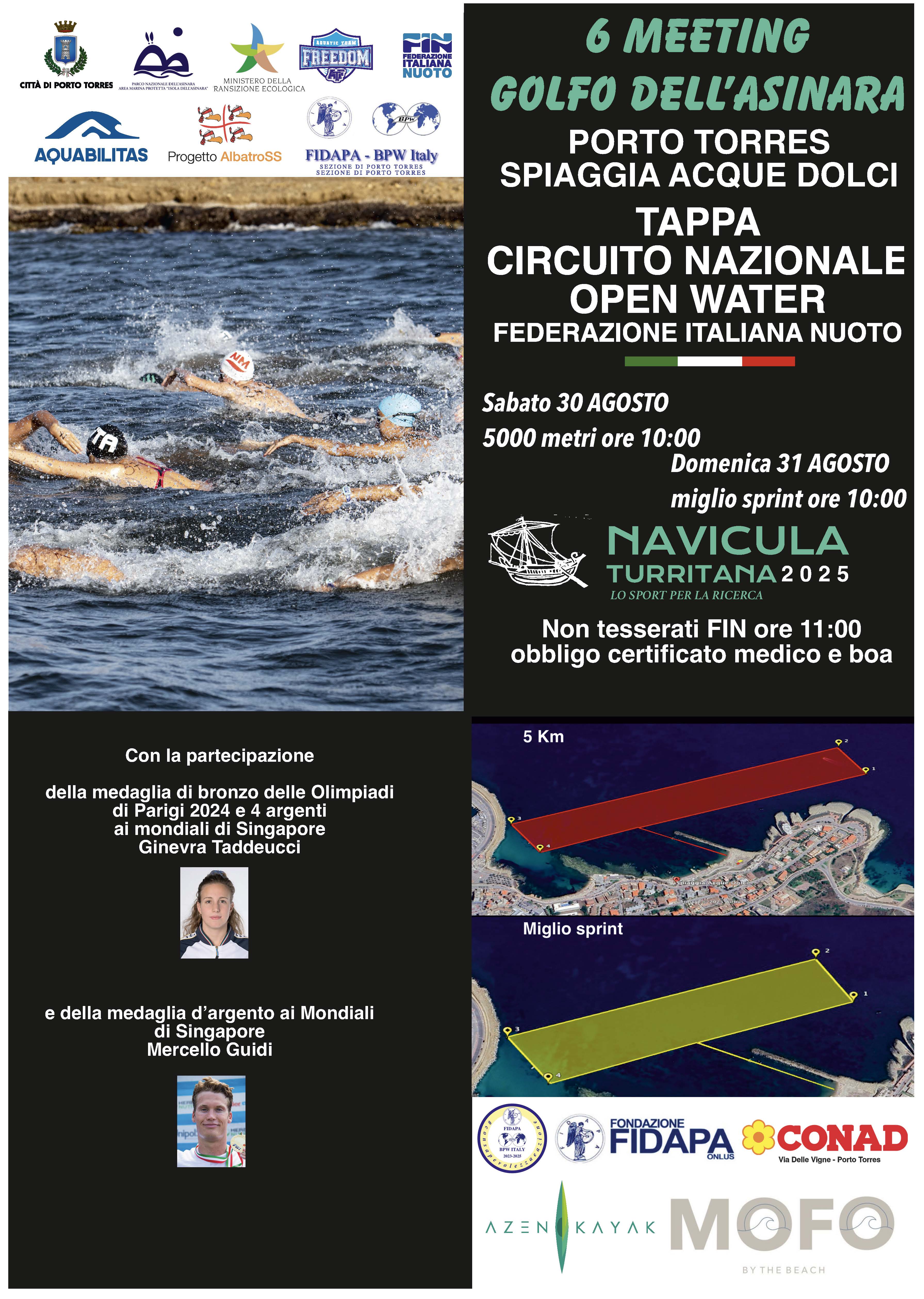 La gara di nuoto vedrà la partecipazione di numerosi atleti provenienti da tutta l’isola e dalla penisola e avrà come testimonial due atleti della Nazionale Italiana di Fondo Ginevra Taddeucci e Marcello Guidi reduci dai mondiali di Singapore.