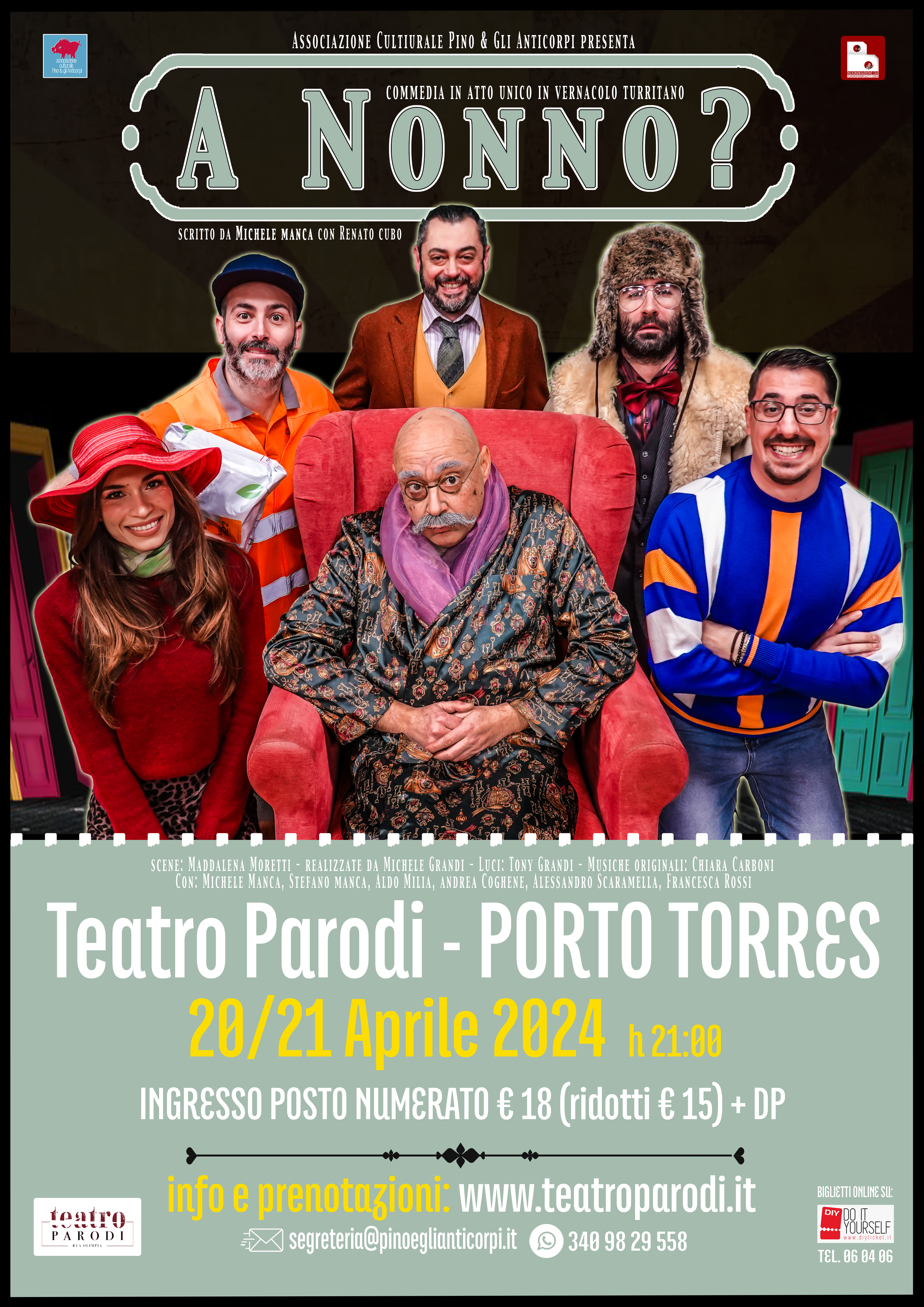Scritto da Michele Manca con Renato Cubo, “A Nonno?” è una esilarante commedia in atto unico, nonché il primo spettacolo nel quale Pino e gli Anticorpi si cimentano in una commedia in vernacolo, e il primo redatto secondo il recente standard ortografico della lingua Turritana.