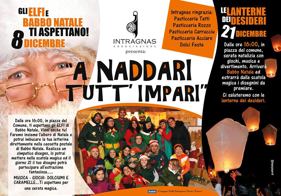 Intragnas, col patrocinio del Comune di Porto Torres, presenta “A Naddari tutt' impari”, due serate di festa in piazza con Babbo Natale e i suoi elfi.