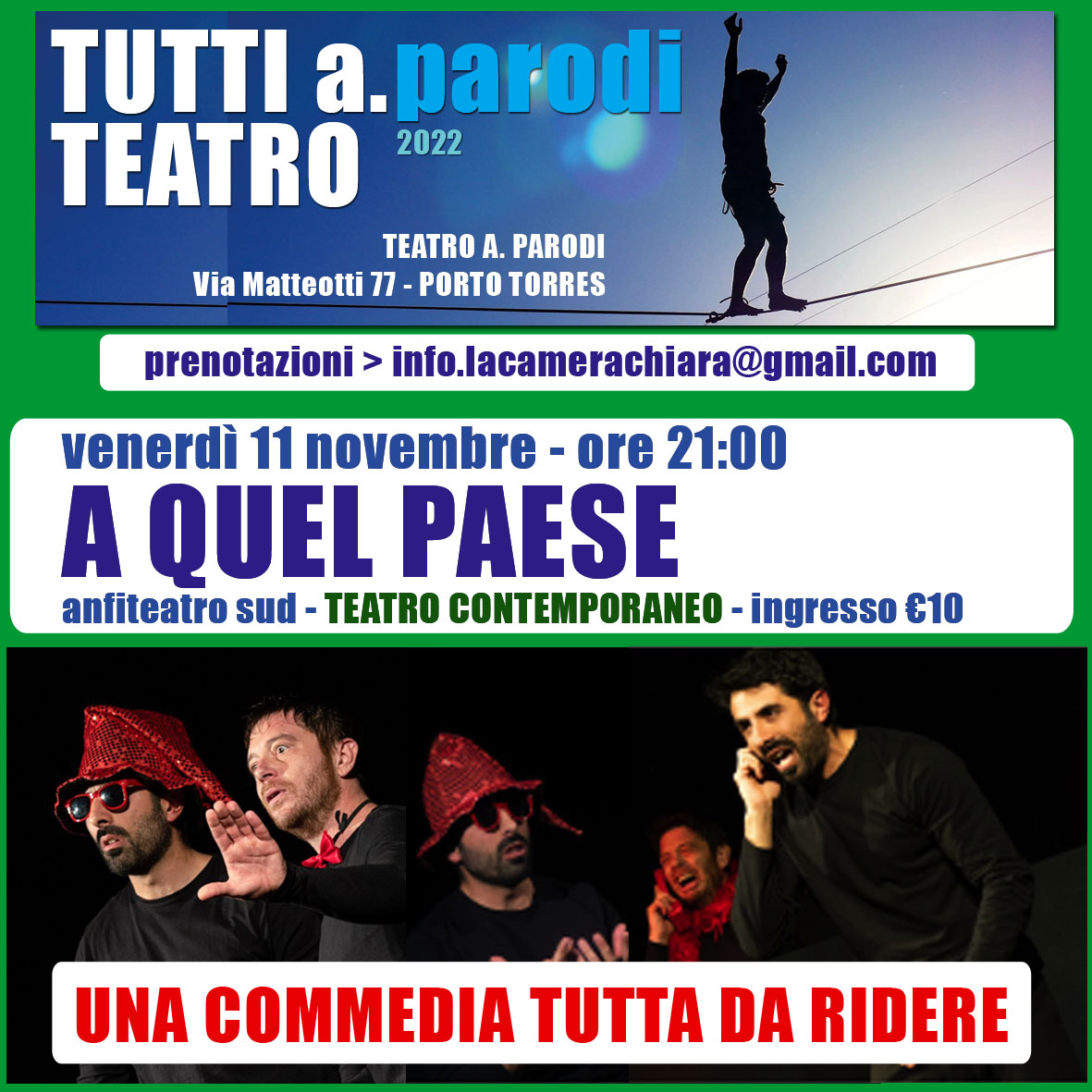 Dopo il successo de “S’Accabadora” dello scorso anno, la Compagnia Anfiteatro Sud torna al Parodi con lo spettacolo “A quel paese”, vincitore del premio "La città infinita" e "Spirito Fringe al Roma Fringe Festival 2020".