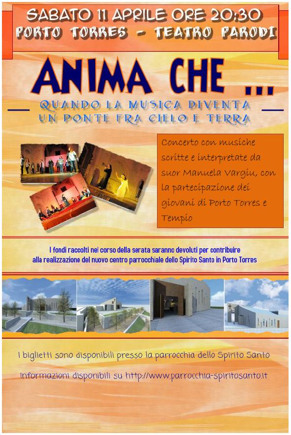 Concerto con musiche scritte e interpretate da Suor Manuela Vargiu, con la partecipazione dei giovani di Porto Torres e Tempio.