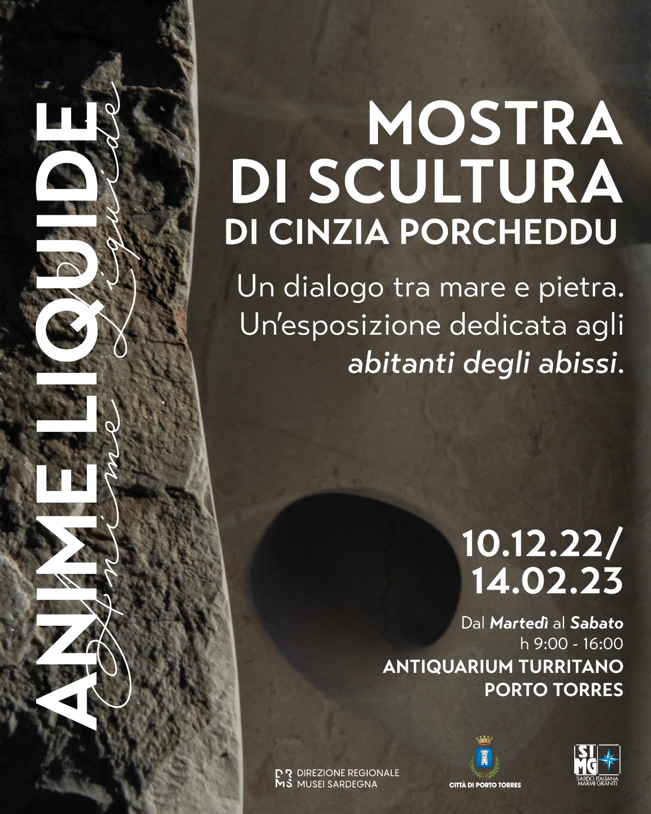 L’Antiquarium Turritano ospiterà la mostra di sculture in pietra dello scultore di Porto Torres Cinzia Porcheddu, autore della scultura SoNoS in marmo di Orosei, situata a Balai dedicata ad Andrea Parodi, noto cantante Sardo-ligure