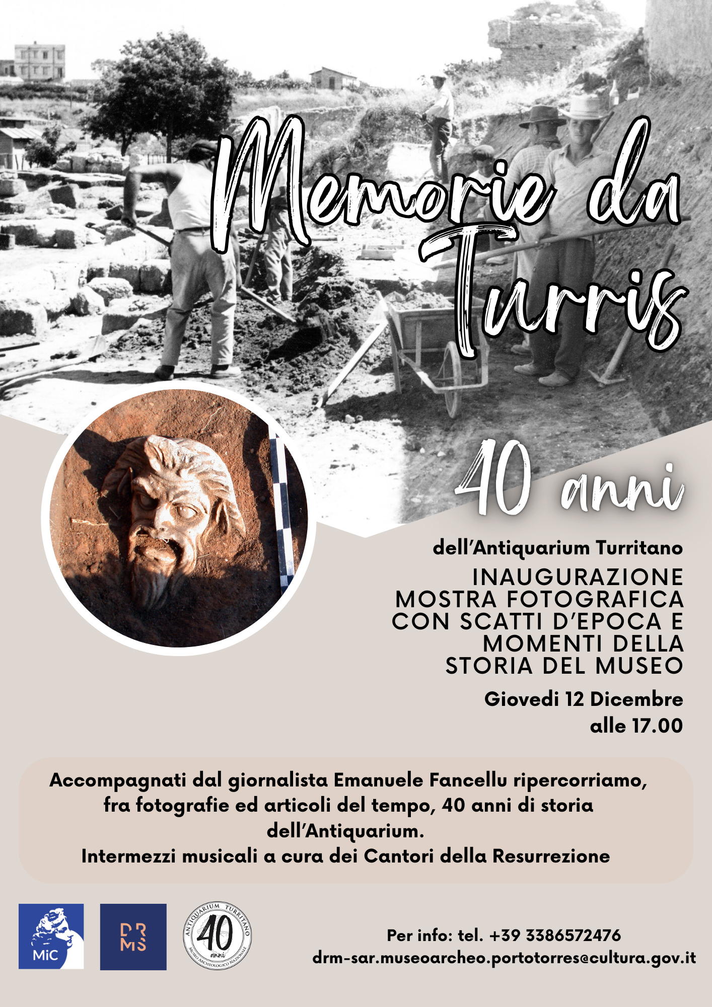 In occasione del quarantennale dalla sua inaugurazione, avvenuta il 15 Dicembre 1984, l’Antiquarium Turritano organizza tre eventi commemorativi.