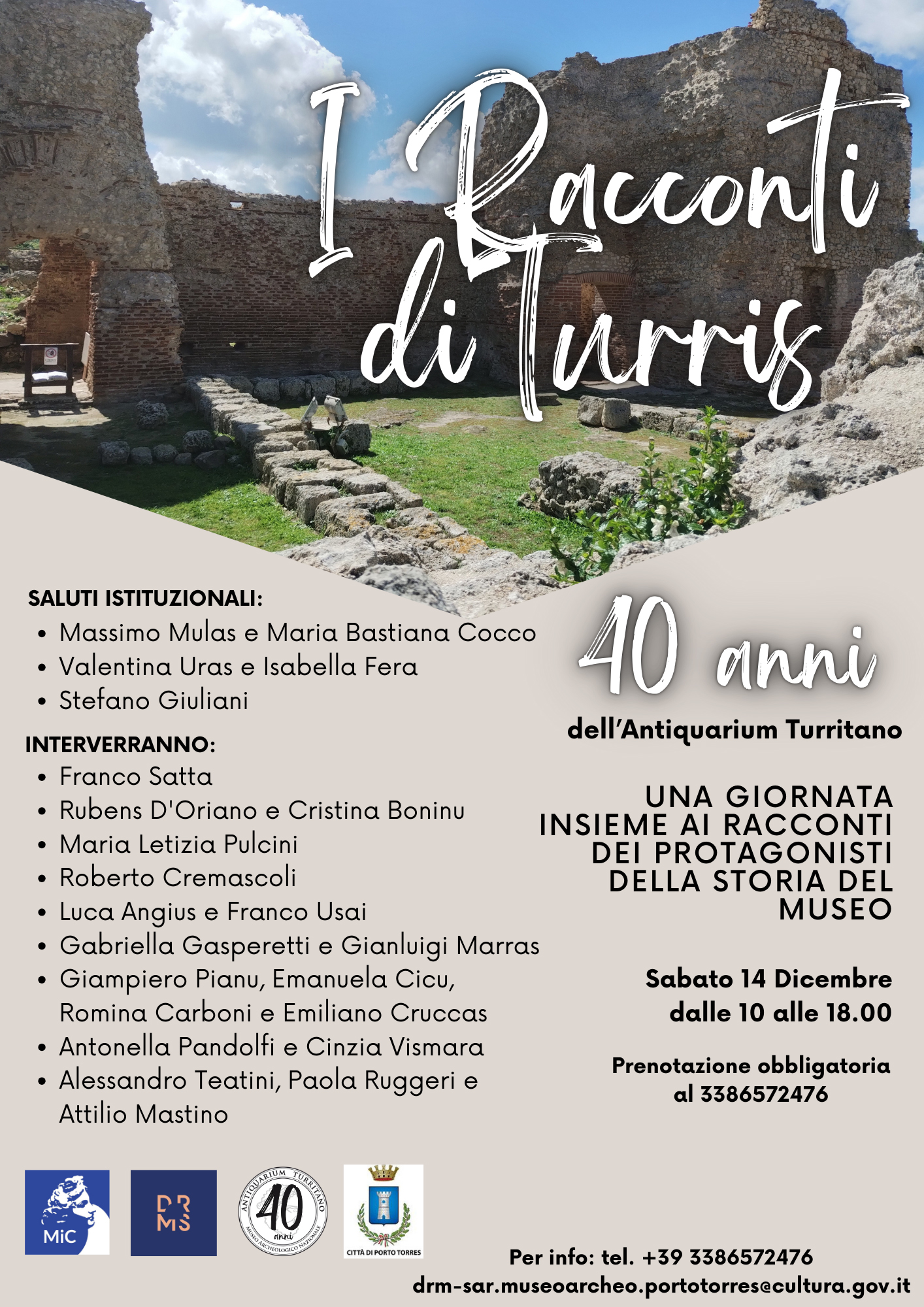 In occasione del quarantennale dalla sua inaugurazione, avvenuta il 15 Dicembre 1984, l’Antiquarium Turritano organizza tre eventi commemorativi.