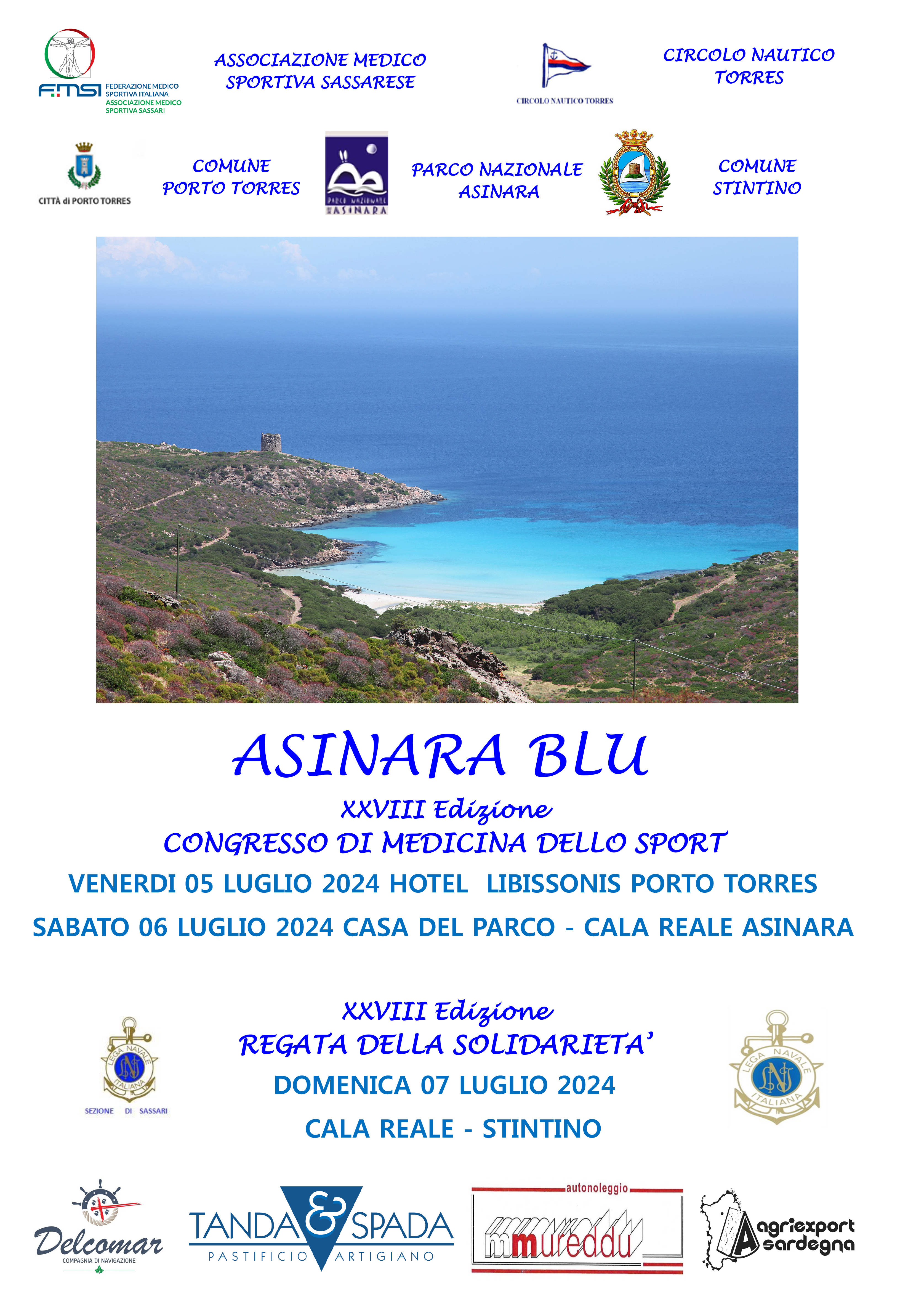 Nata dall’unione di due differenti ed autonome iniziative - il Congresso di Medicina e Cardiologia dello Sport e la Regata Velica della Solidarietà  - la manifestazione Asinara blu, organizzata dall’associazione Ambrosia torna il 56 e 7 luglio e toccherà Porto Torres, l’Asinara e Stintino.