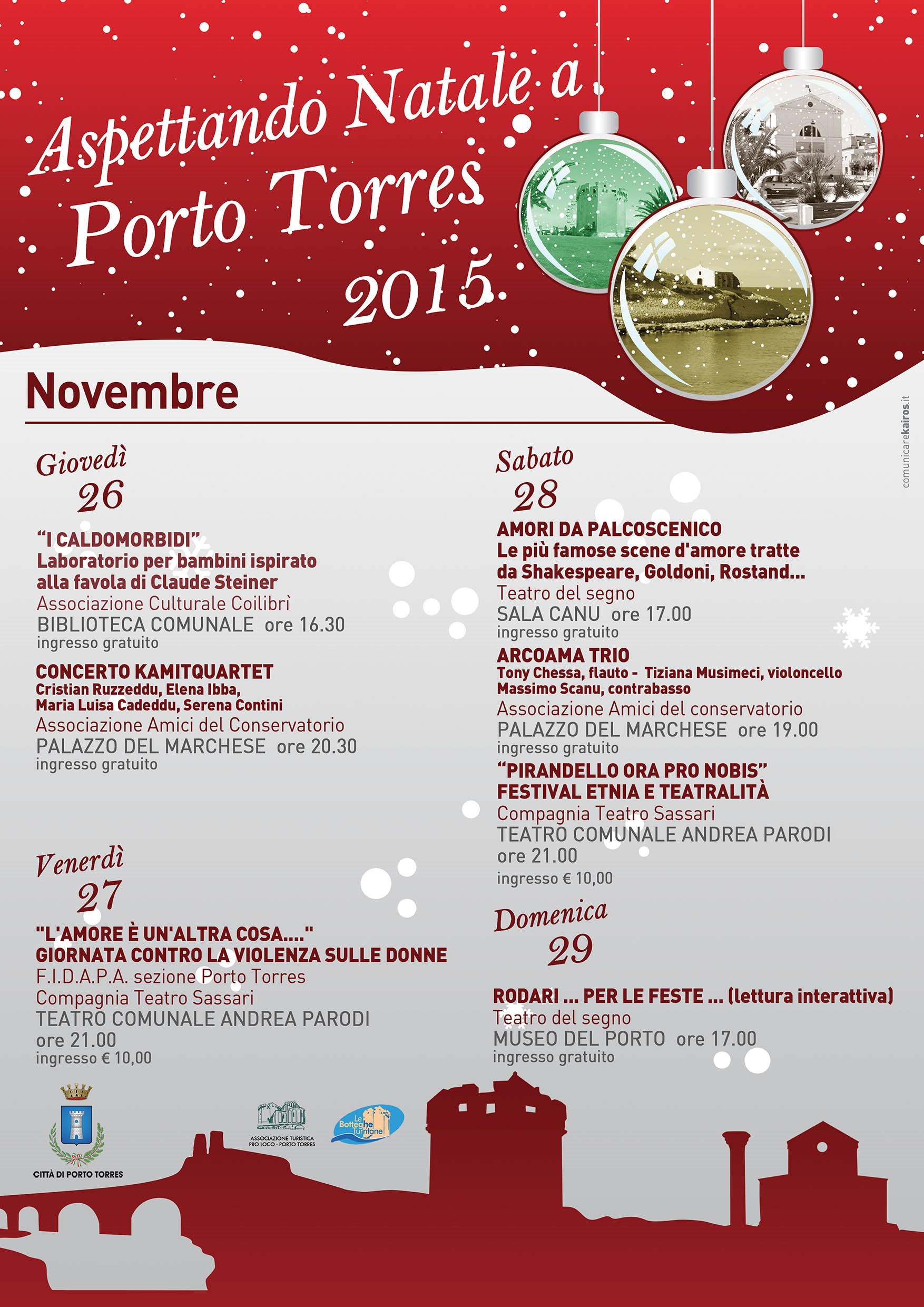 Anteprima del cartellone degli eventi del Natale 2015 con concerti, rappresentazioni teatrali e laboratori per bambini nei nostri luoghi della cultura. Quest'anno il Natale a Porto Torres inizia prima!