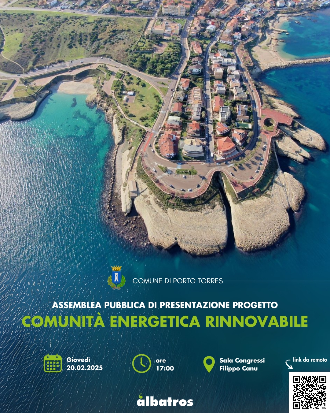 Presso la Sala Congressi Filippo Canu si terrà la prima assemblea pubblica di presentazione del progetto Comunità Energetica Rinnovabile promosso dal Comune di Porto Torres col supporto tecnico-amministrativo di Albatros srl.