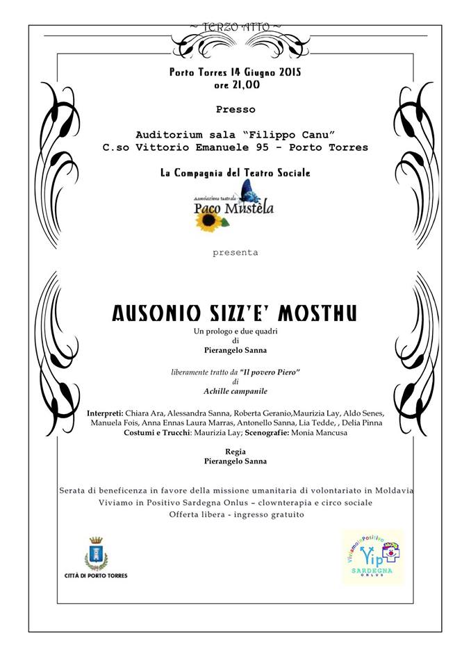La Compagnia di Teatro Sociale di Sassari "Paco Mustela", capitanata dal regista Pieangelo Sanna, mette in scena, per la prima volta, un adattamento liberamente tratto dalla pièce teatrale di Achille Campanile "Il povero Piero", in dialetto sassarese, dal titolo "Ausonio sizz'è mosthu"