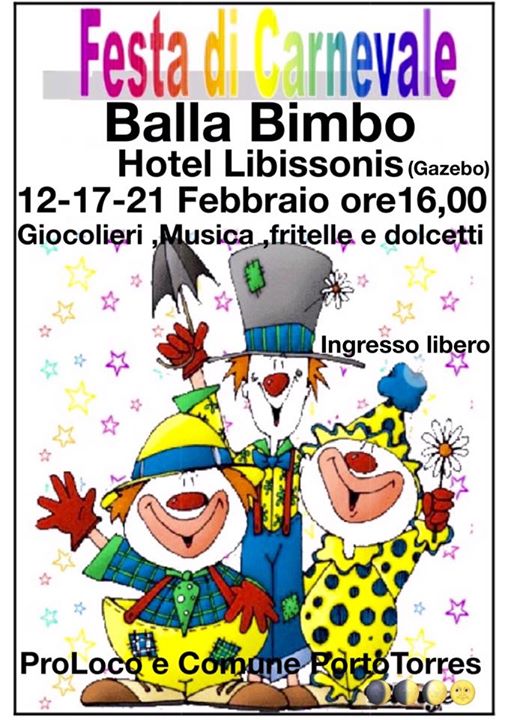 Cos'è Serate di Carnevale con giocolieri, musica, frittelle e dolcetti. ProLoco e Comune di Porto Torres. Ingresso libero. Balla Bimbo | Feste di Carnevale A chi è rivolto