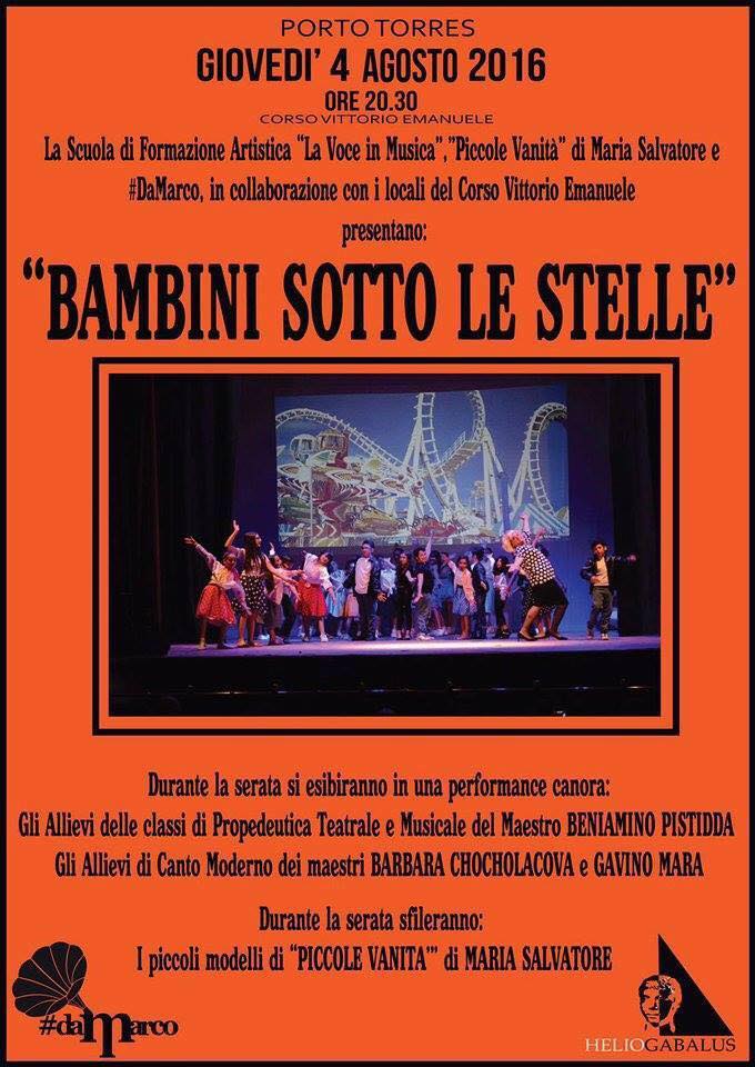 Durante la serata si esibiranno in una perfomance canora gli allievi delle classi di propedeutica teatrale e musicale del Maestro Beniamino Pistidda e gli allievi di canto moderno dei maestri Barbara Chocholacova e Gavino Mara. Durante la serata sfileranno i piccoli modelli di "Piccole Vanità" di Maria Salvatore.