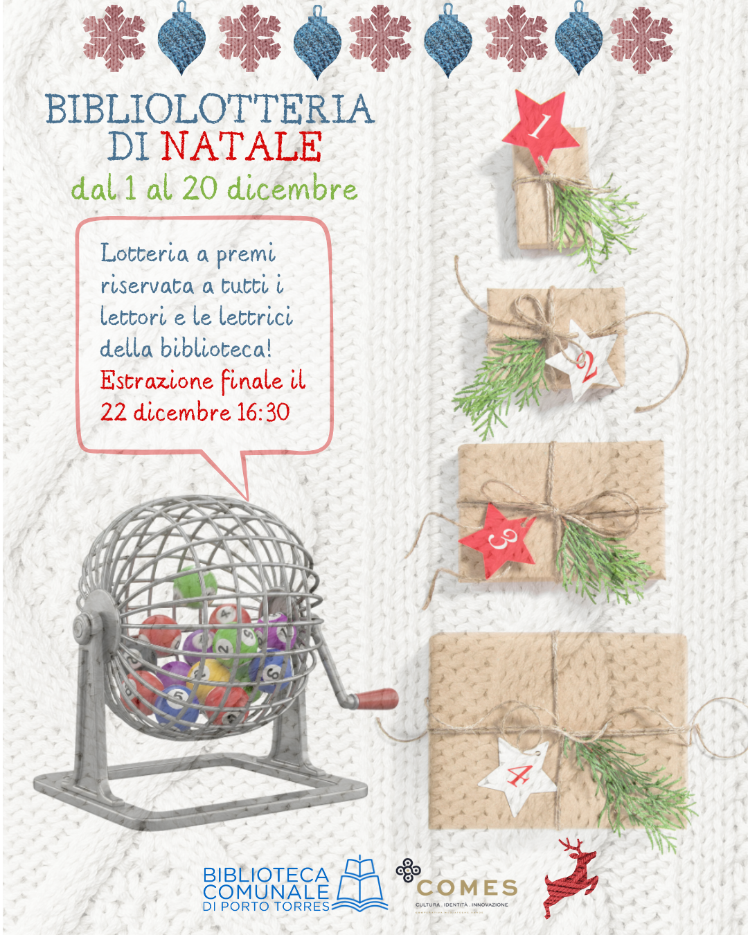 Dal 1 al 20 dicembre 2025, durante le giornate e orari di apertura della biblioteca, gli utenti della biblioteca potranno partecipare alla Lotteria letteraria a premi.