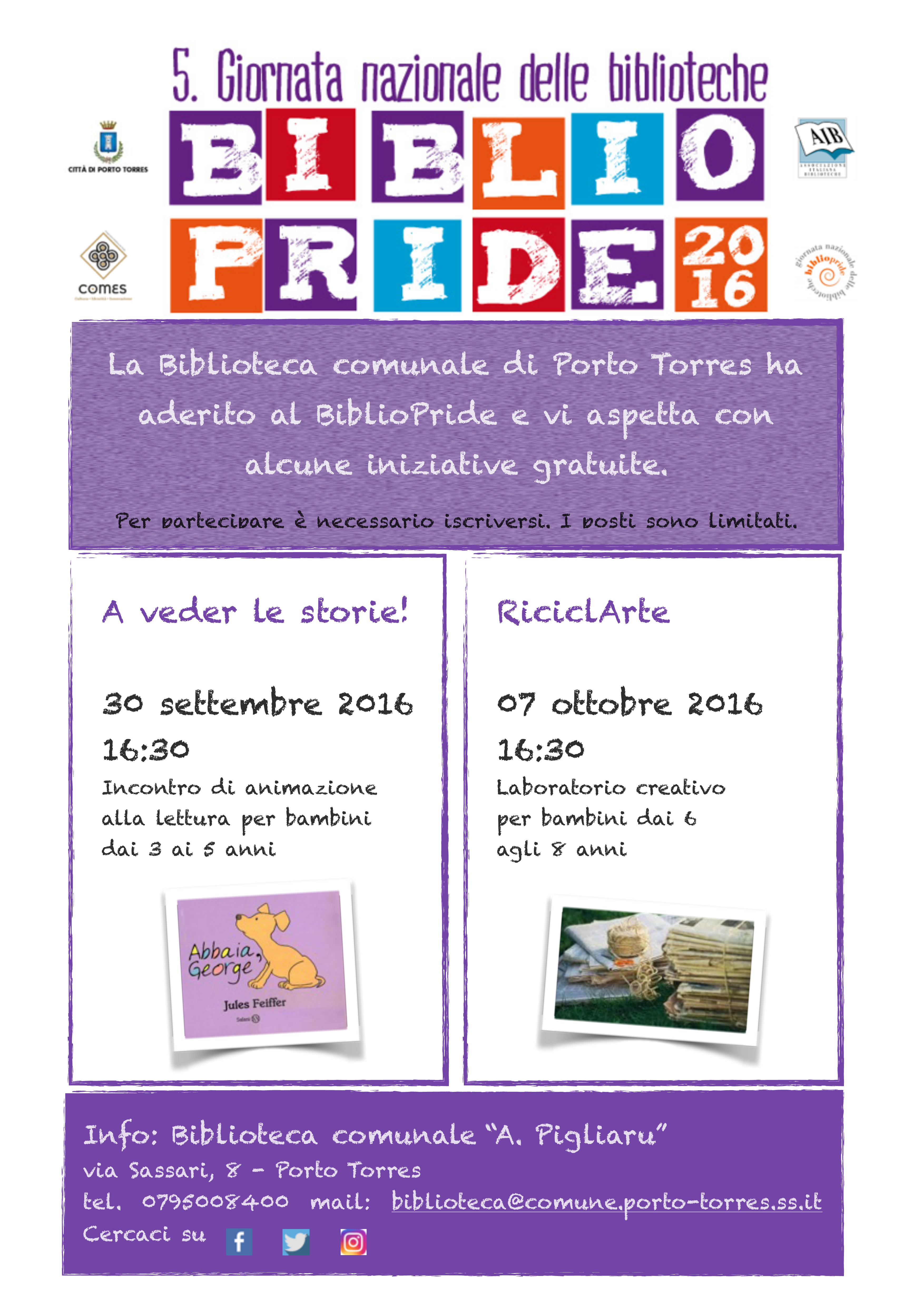 La Biblioteca comunale in collaborazione con la cooperativa Comes, ha organizzato due iniziative gratuite rivolte ai più piccoli, in occasione della 5a Giornata Nazionale delle biblioteche - BiblioPride.
