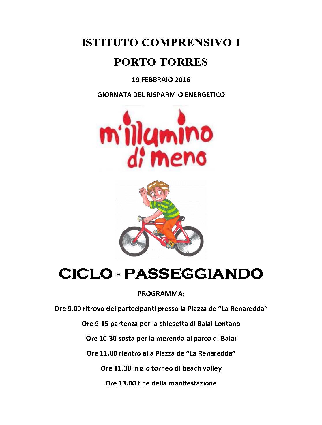 L’Istituto Comprensivo n.1 di Porto Torres organizza la manifestazione “Ciclo - passeggiando” nell’ambito della Giornata del risparmio energetico, "m'illumino di meno".