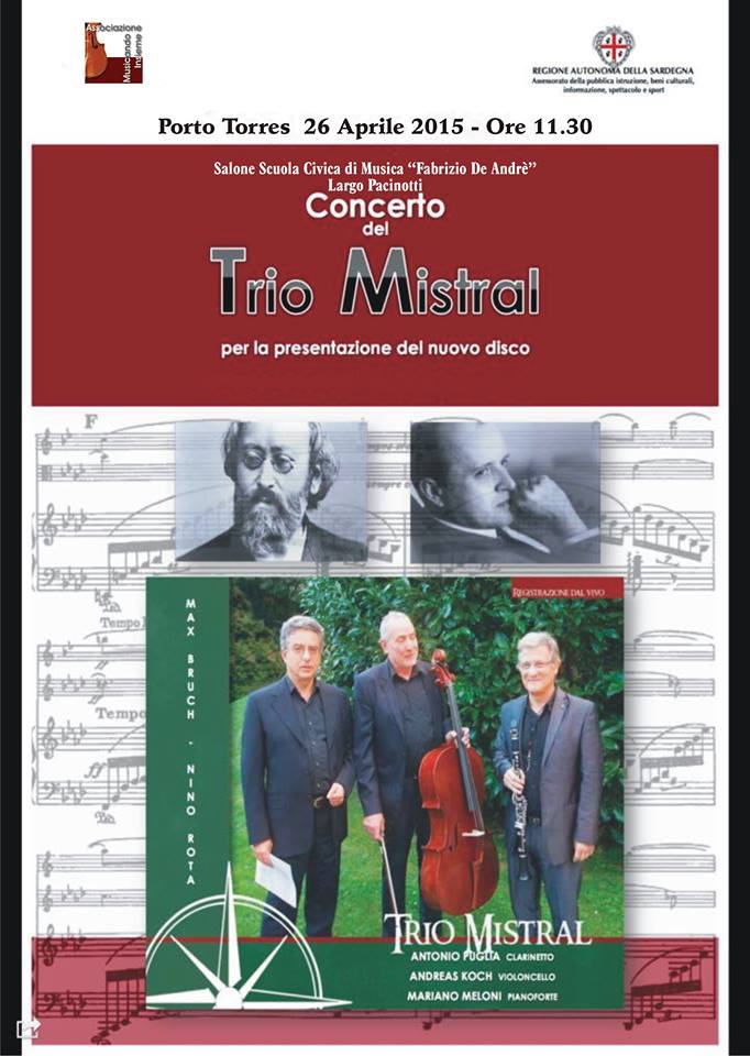 Concerto del Trio Mistral (clarinetto, violoncello e pianoforte) per la presentazione del nuovo disco.