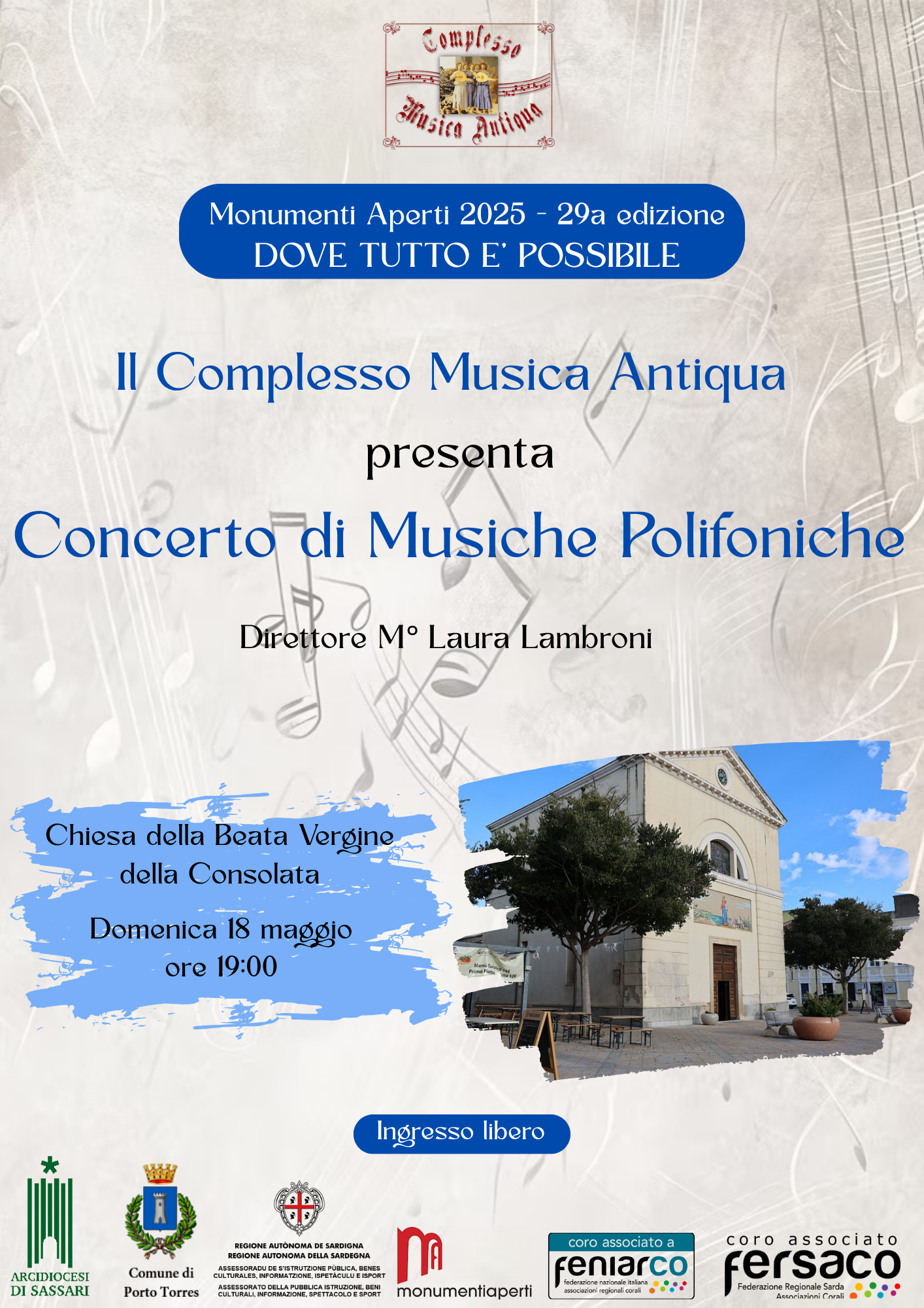 Il Complesso Musica Antiqua, sotto la Direzione del M. Laura Lambroni, offrirà un breve concerto ai visitatori della Chiesa della Beata Vergine della Consolata.